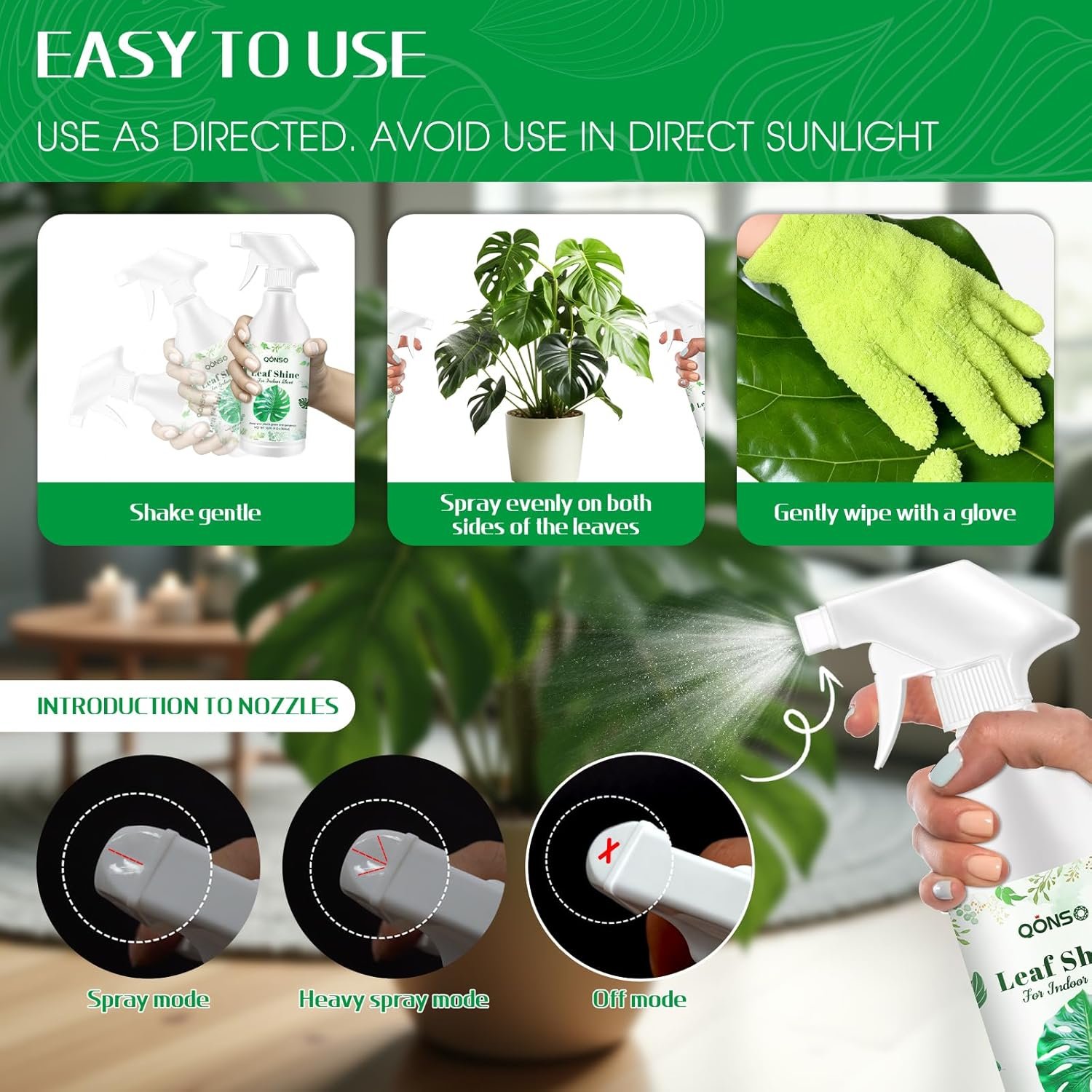EASY TO USE: No hassle, no mess! Effortlessly maintain your plants’ beauty. Simply spray on both sides of the leaves and then gently wipe off, revealing a fresh and vibrant shine. Greatly saving you time and effort.
