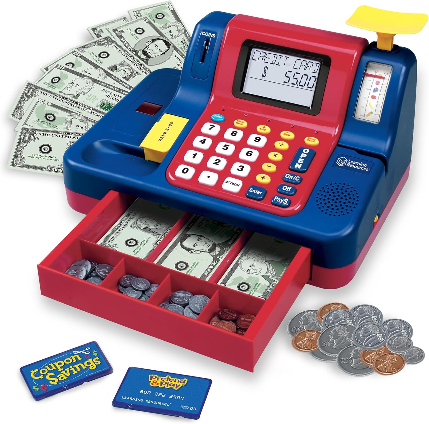 Learning Resources Pretend & Play Teaching Cash Register, 73 Piece Set, Ages 3+, Talking Register, Counting Activities, Money Management