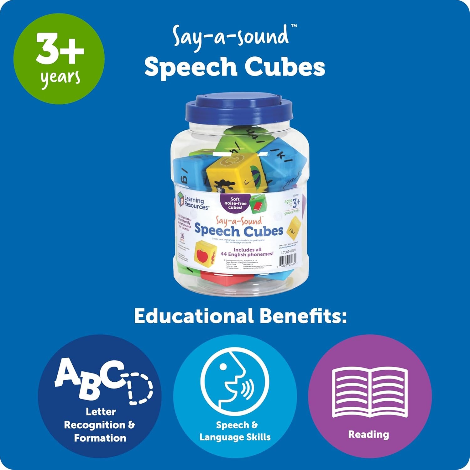 Learning Resources Say-a-Sound™ Speech Cubes, Preschool Learning Activities, ABC Flash Cards, Speech Therapy Toys, Gifts for Kids, Ages 3+, 16 Pieces