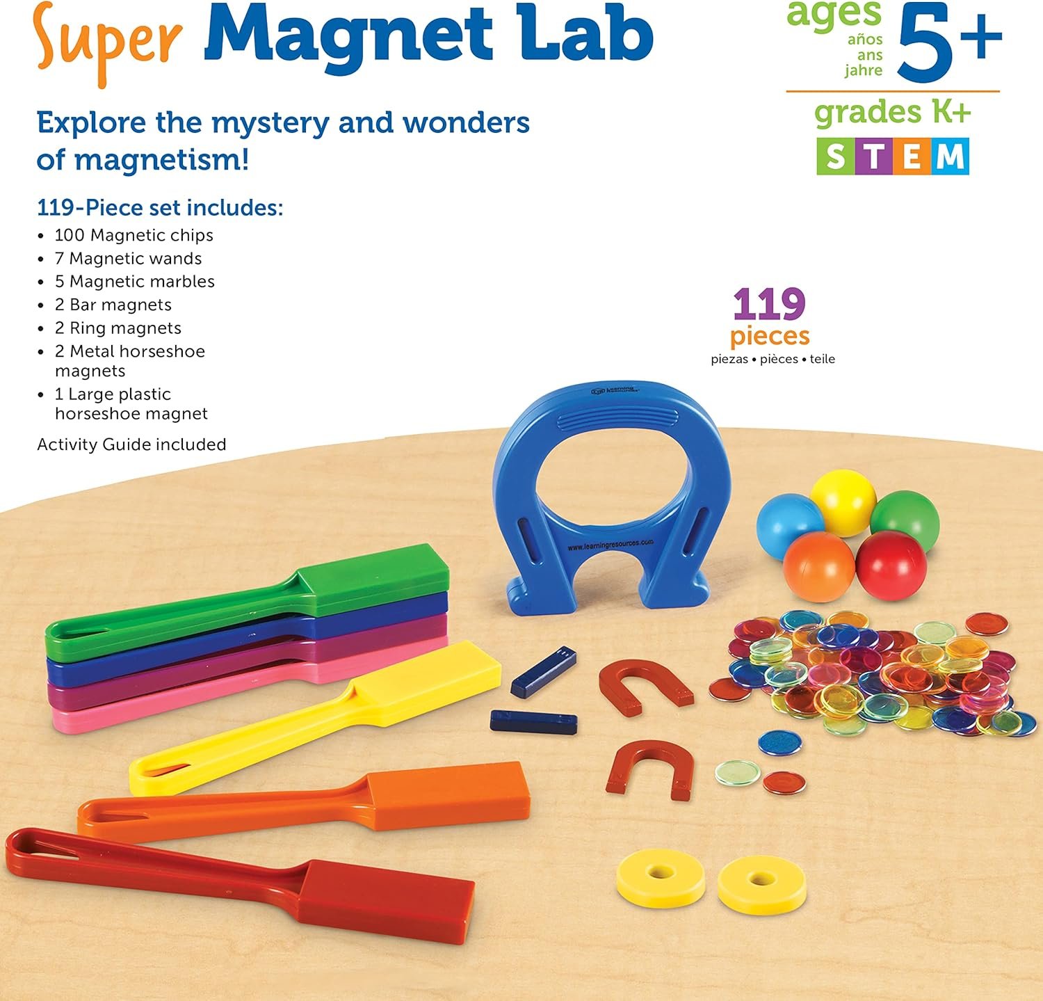 Learning Resources Super Magnet Lab Kit – 119 Pieces, Ages 5+, STEM ,Toys for Kindergartner, Science Learning Activities for Kids,Back to School Supplies,Teacher Supplies