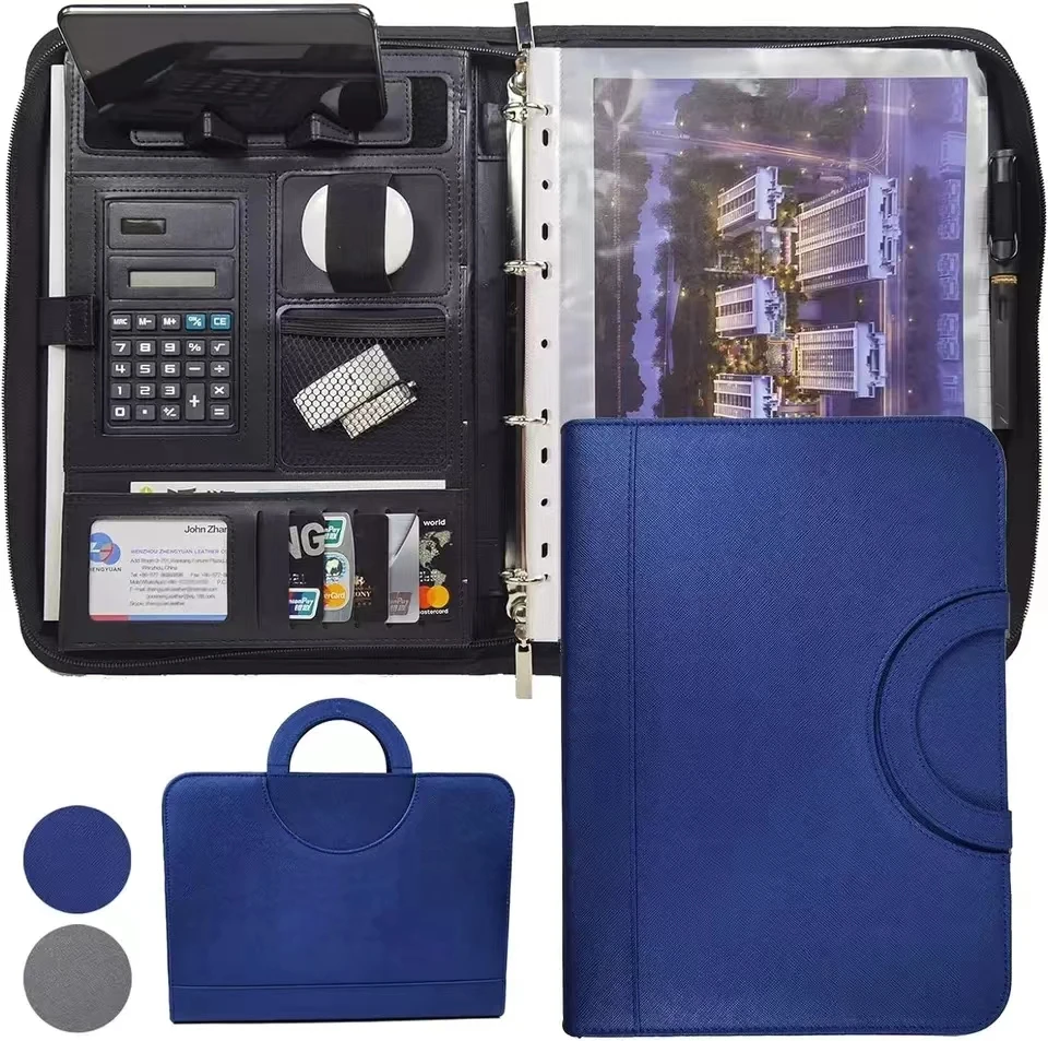 Leather Multifunctional A4 Conference Folder – Business Stationery Contract File Organizer with Zipper And Card Holder