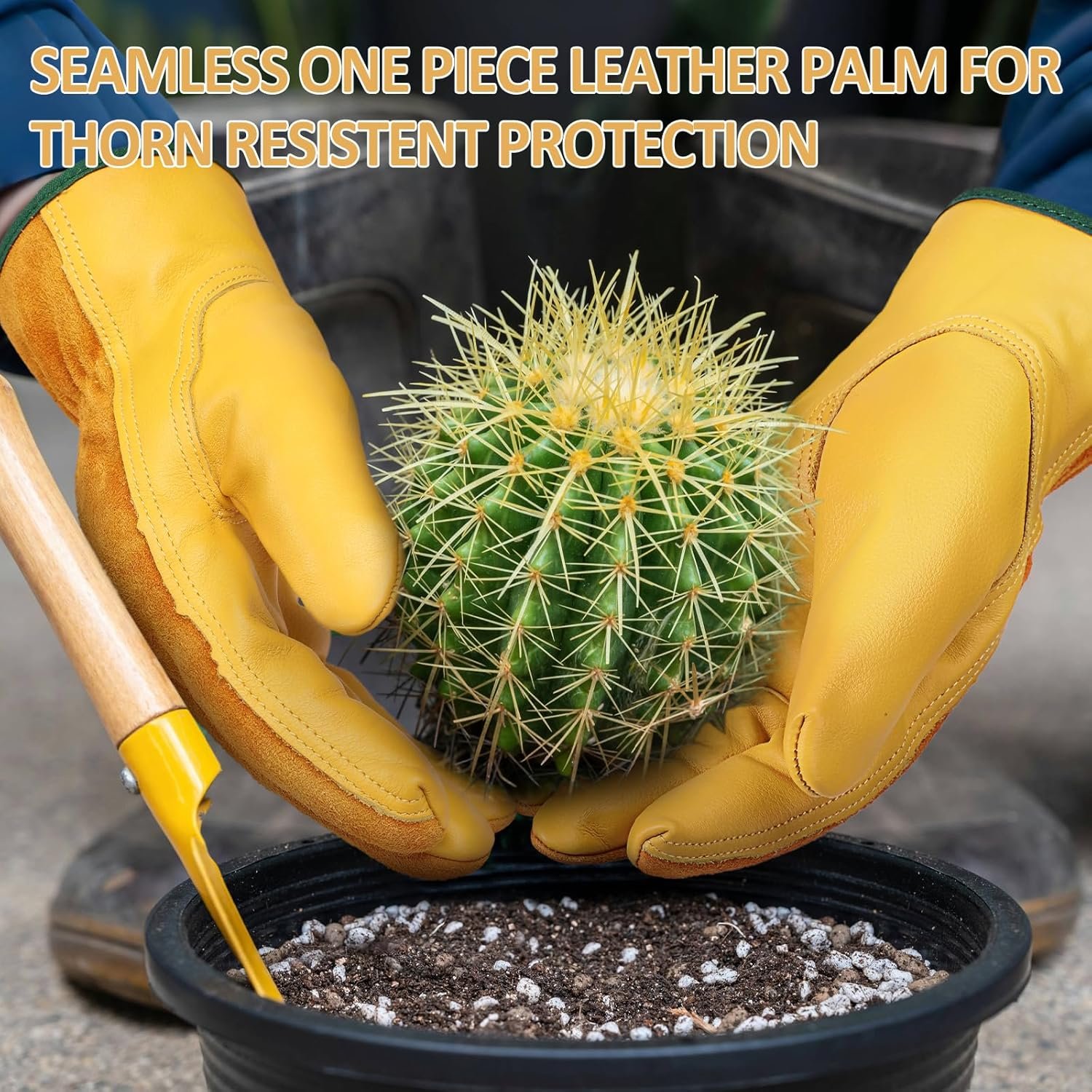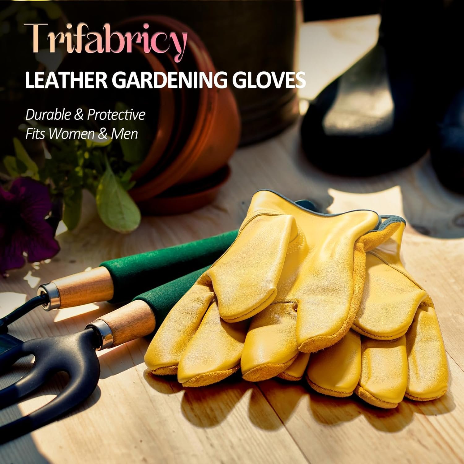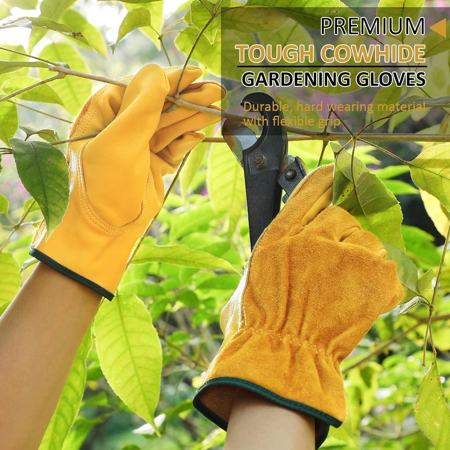 FULL PROTECTION GARDEN GLOVES: The thickened cowhide work gloves provide all-round protection for your hands. The inherent durability, puncture resistance and wear resistance of leather can allow you to work with peace of mind. The double thread sewing gives you stable protection. These gardening gloves can be used when pulling weeds, weeding, digging, sowing, mixing fertilizer, landscaping, potting, pushing lawnmowers or wheelbarrows, pruning and other operations.