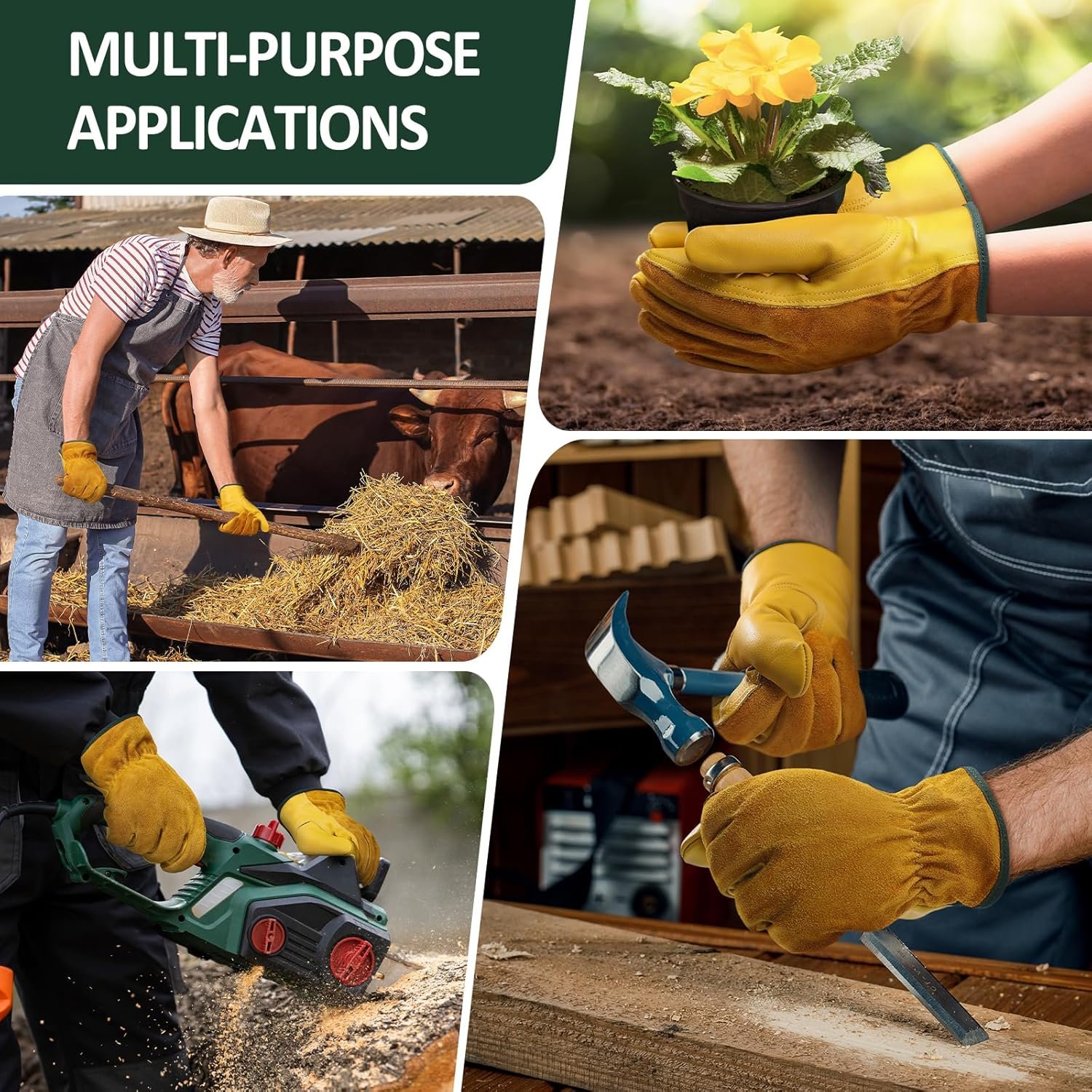 PERFECT GIFT: Gold is simpler and more stylish. Professional leather processing makes the gloves meet the safety requirements. The work gloves are suitable for gardener, carpenter, forestry workers, welder, electrician, trucker, driver, manual workers, blacksmith, ironworker, builder, farmer. This is the first choice for yourself or friends, whether mens or womens.