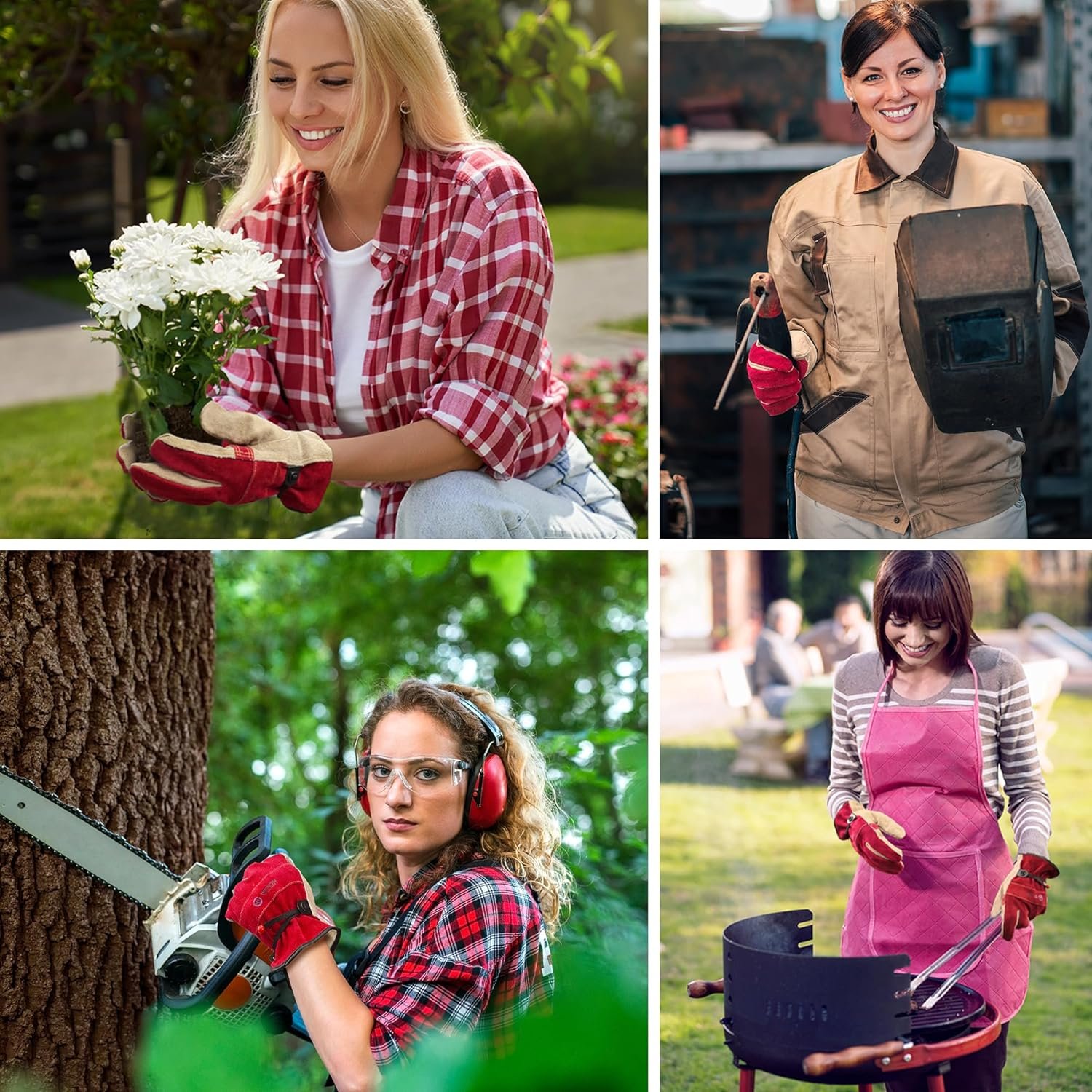 This is a real multi-purpose leather work glove. You can wear it when doing many jobs. It will protect you well. For example: gardening, welding, construction, farm, ranch, barn, Truck driving, florist, landscaping, electrician, demolition, woodworking, driving, grinding, wood cutting, yard garage shed and warehouse work,etc. You can also use it to BBQ, DIY, use the chainsaw and lawn mowers, moving rock, handle the burning fireplace and wood stove, handling wood, barbed wire, iron, etc.