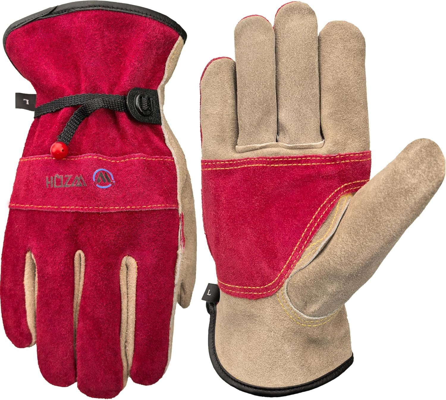 Leather Work Gloves for Women, Large Glove for Gardening, Tig/Mig Welding, Construction, Chainsaw, Farm, Ranch, etc. Cowhide, Cotton Lined, Utility, Firm Grip, Durable. Rose Red – Grey L