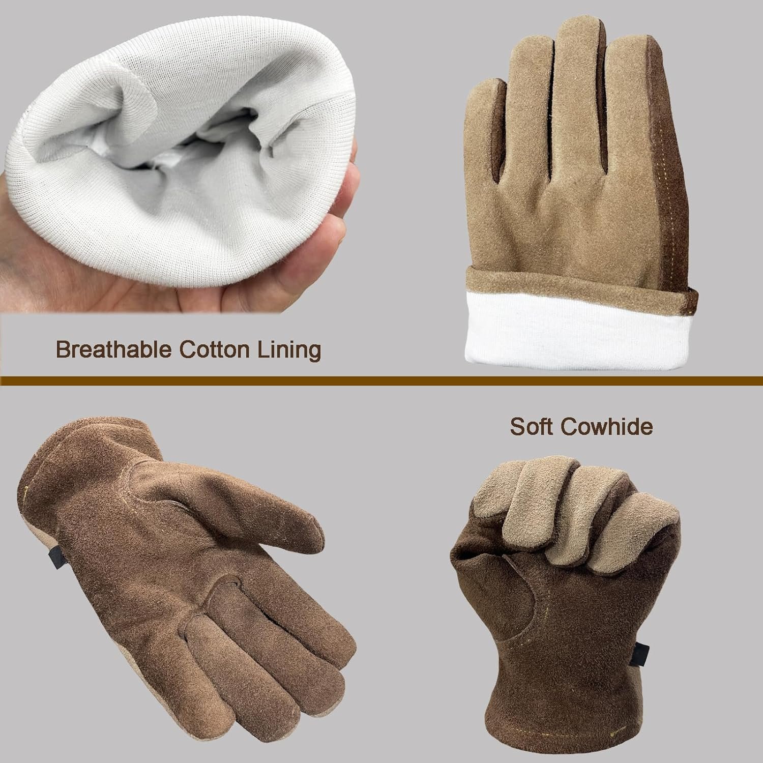 【Multi-Purpose Professional Protection】-Crafted with premium cowhide leather and double-stitched seams, these heavy-duty gloves withstand welding sparks, construction debris, thorny plants, and rough material handling. Ideal for TIG/MIG welding, concrete work, landscaping, Woodworking, Driving and warehouse operations.
