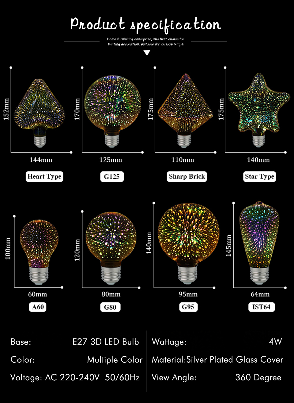 Size:ST64 3D Bulb:60*130mm