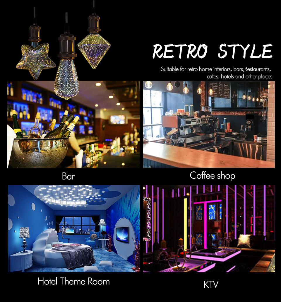 8 reviews for Led Bulb Star Fireworks 3D E27 Vintage Edison Night Light AC 110V 220V A60 ST64 G80 G95 G125 Holiday Novelty Decoration Lighting