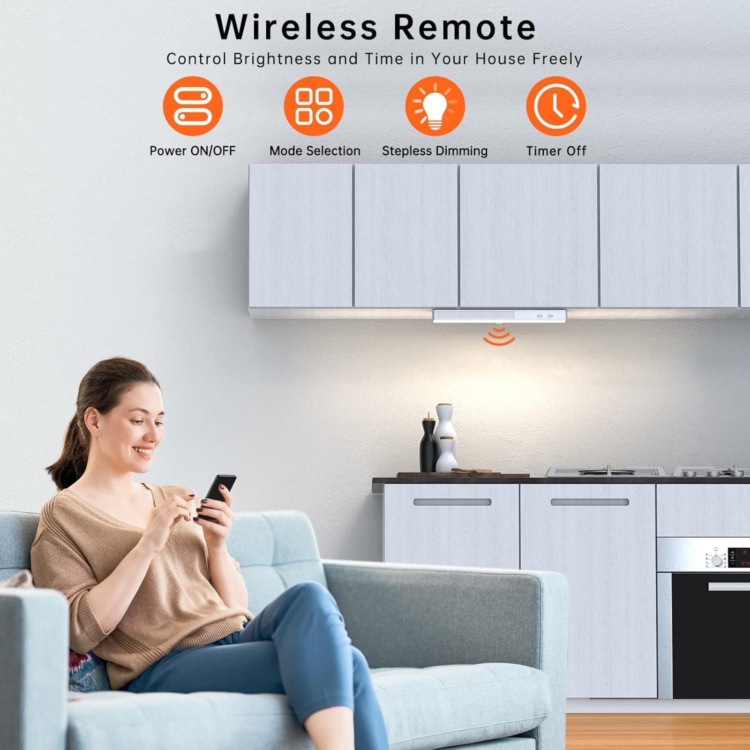 DIMMABLE AND TIMING — These dimmable closet lights come with a remote. In “ON” mode, the light will turn on all the time, and it can works with the remote control. There are 2 ways of adjustable brightness: ①10%/50%/100% brightness, ② Step-less Dimming: pressing the +/- button of the remote control. And it has Timing Function with: 10, 30, 60 or 120 mins. ( Note: the remote control do not work for “Auto Mode”. )