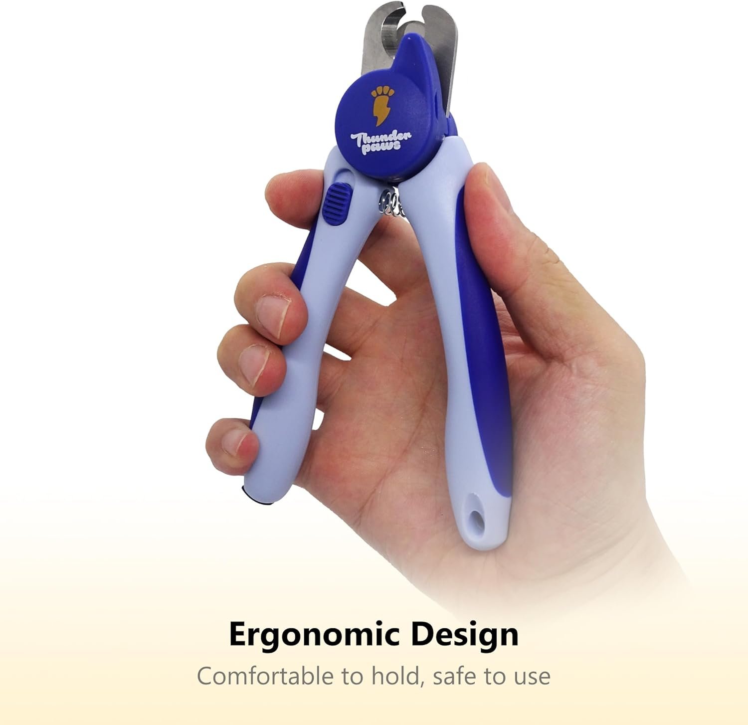 BUILT-IN LED LIGHT: Our LED light illuminates light-colored nails for a safer, easier cutting experience, perfect for families with dogs and cats. (Note: LED light may not be as effective on dark nails.)