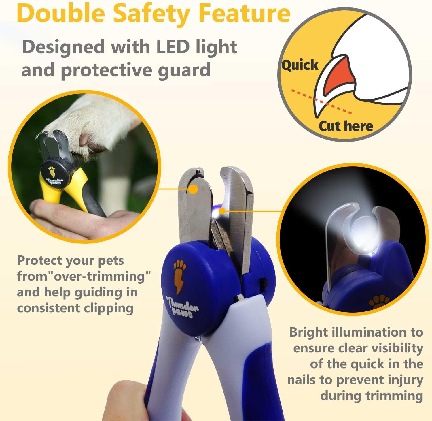 LED Dog Nail Clippers with Light, Trimmers with Protective Guard, Quick Sensor, Safety Lock and Nail File – Suitable for Large and Small Dogs & Cats (Blue, LED)