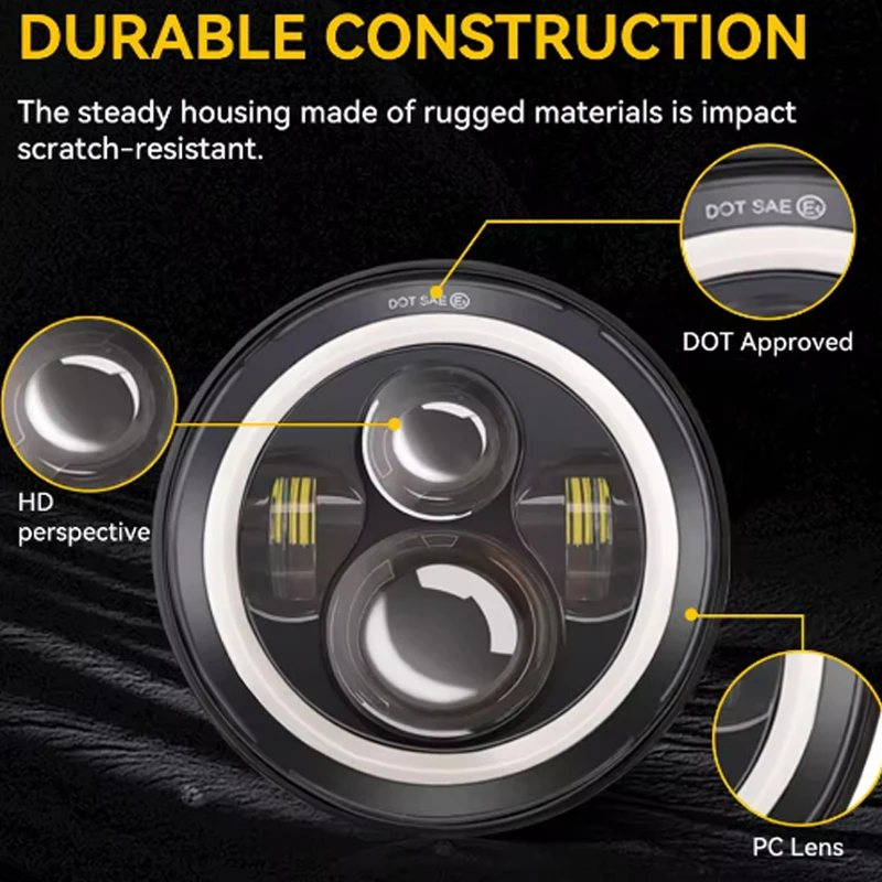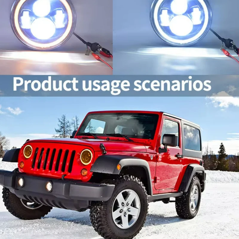 2 reviews for LED Headlight 7 inches Angel Eye for DRL H4 round Car led headlight for Motorcycle Off-Road Jeep JK Spotlights Work Light