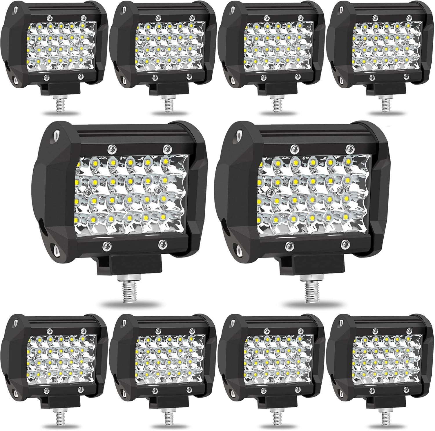 LED Light Pods for Trucks, 4 Inch LED Light Bar 72W 7000lm Quad Row Waterproof Car Off Road Driving Fog Lights Tractor LED Work Lights Spot Flood Beam for Trailer Excavator ATV UTV SUV RV 10Pack