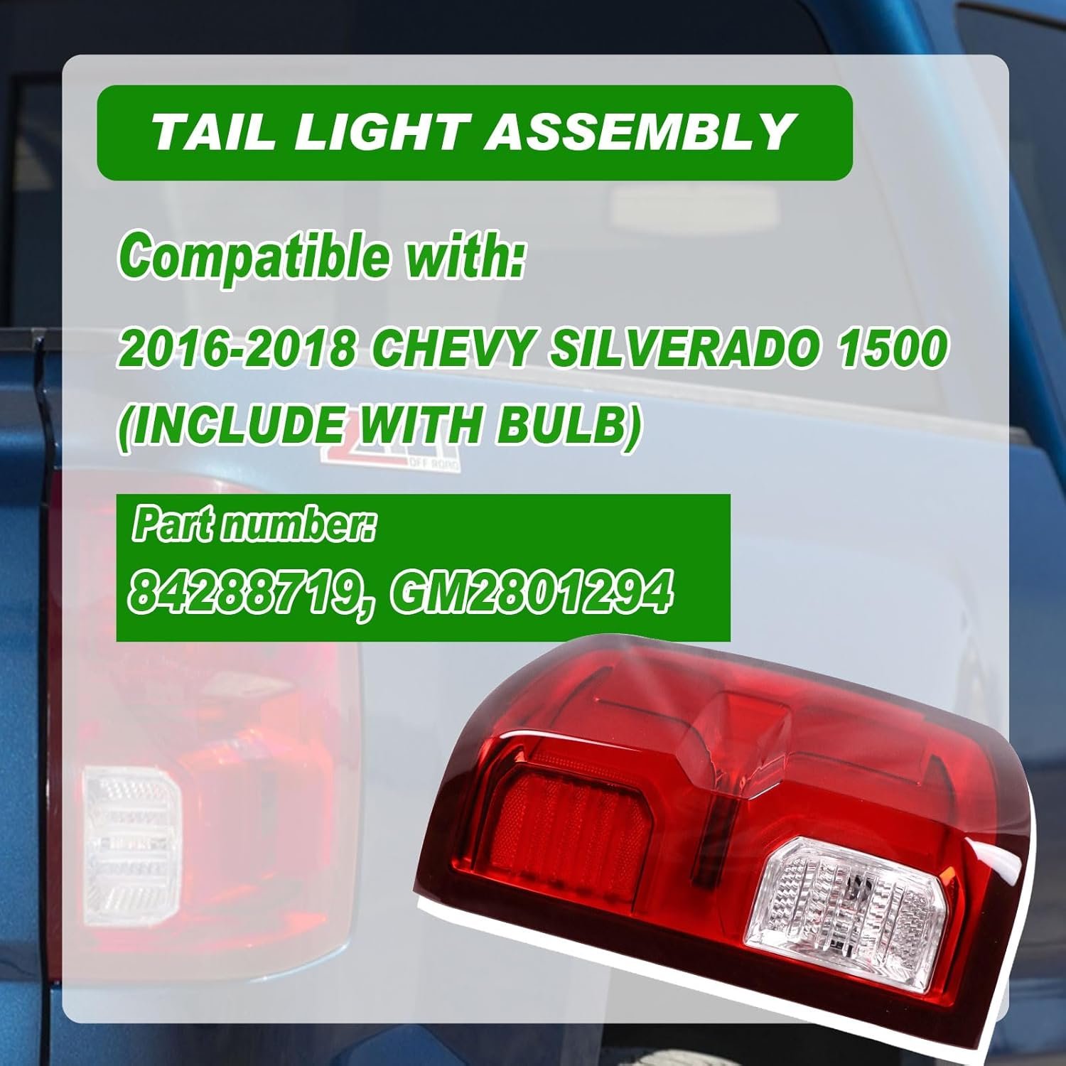 Rear taillights assembly compatible with chevy silverado 1500 2016 2017 2018. Include blub. (Custom,Base,WT,LS,LT,LTZ,SSV,High Country,4.3L/5.3L/6.2L)