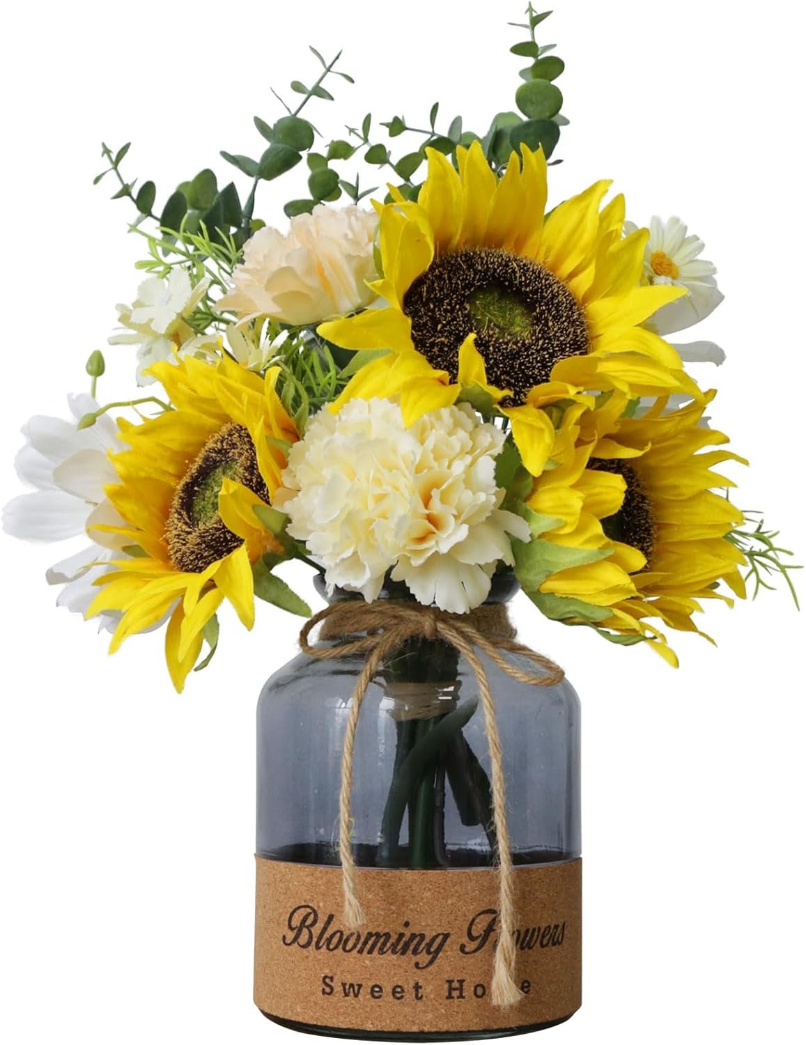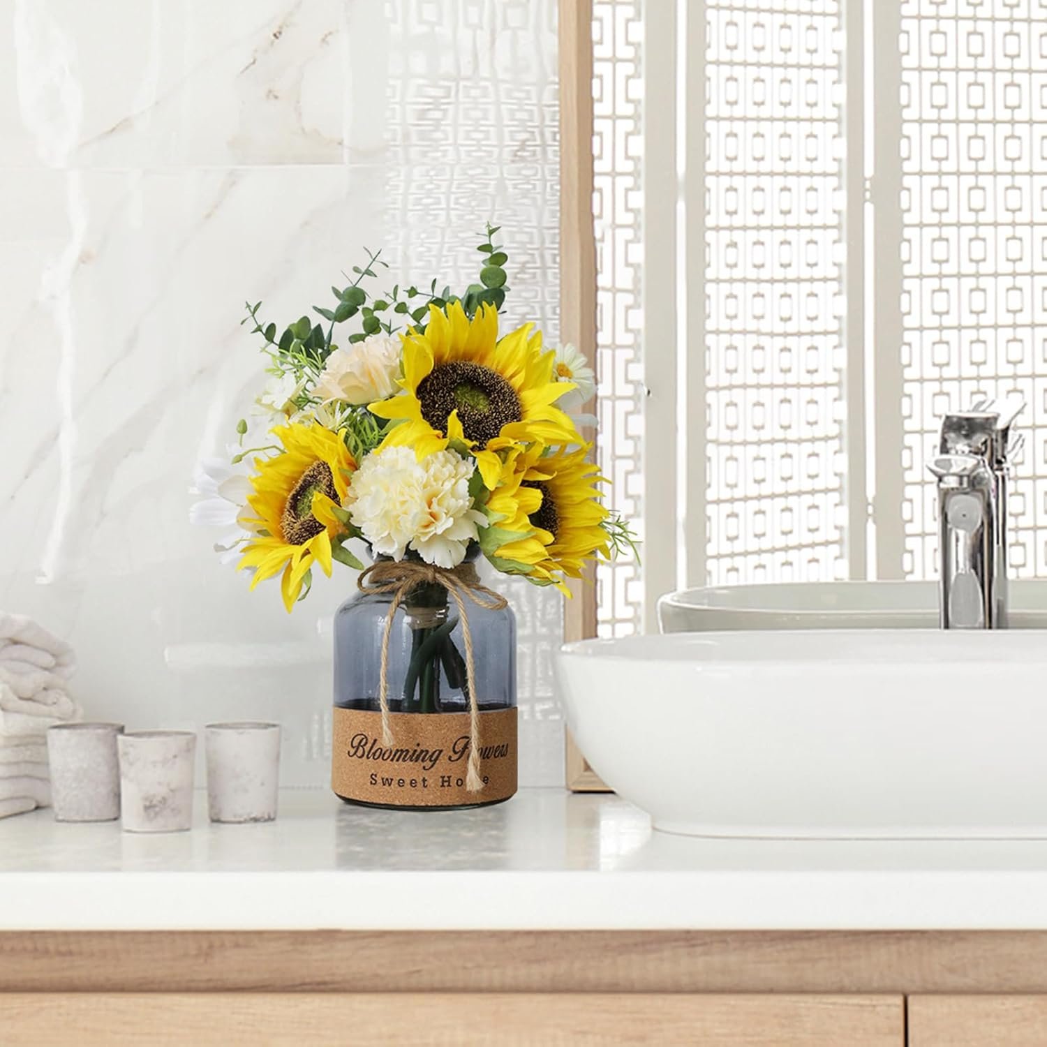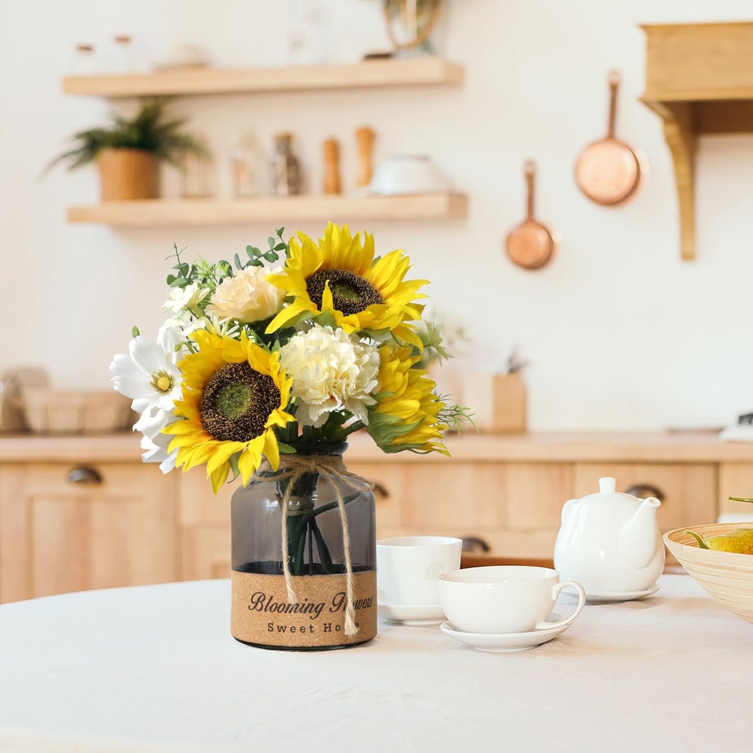 Leftover Faux Flowers in Vase,Artificial Sunflower Bouquets,Flower Centerpieces for Tables,Fake Flowers with Vase,Coffee Table Decor,Silk Flower Arrangements