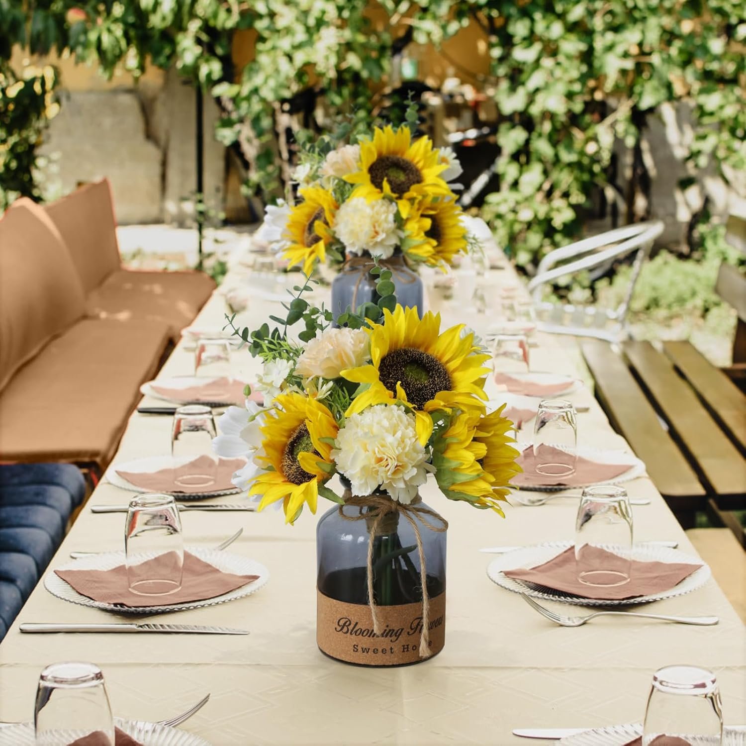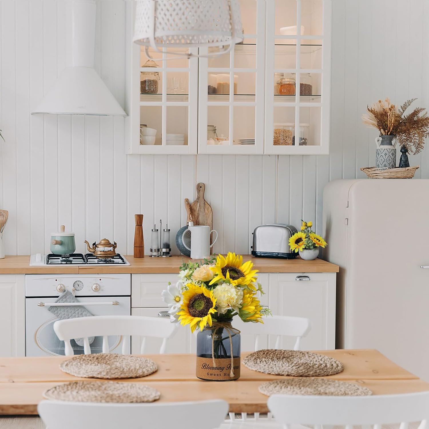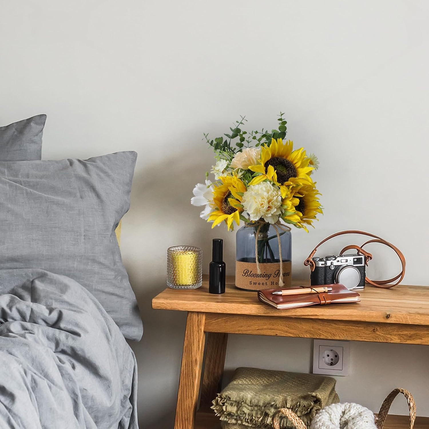Leftover Faux Flowers in Vase,Artificial Sunflower Bouquets,Flower Centerpieces for Tables,Fake Flowers with Vase,Coffee Table Decor,Silk Flower Arrangements