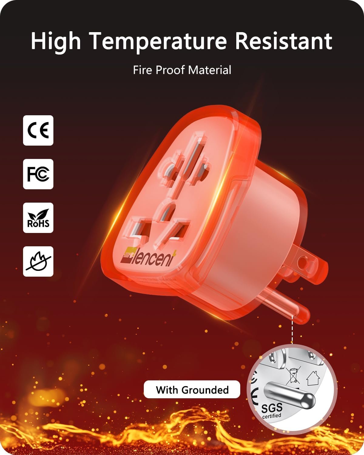 Compact Design- The universal plug adapter to US provides a reliable and easy connection for devices, by just plugging the adapter between the wall outlet and your device. This travel adapter can be plugged in very tightly and hardly protrudes from wall outlets