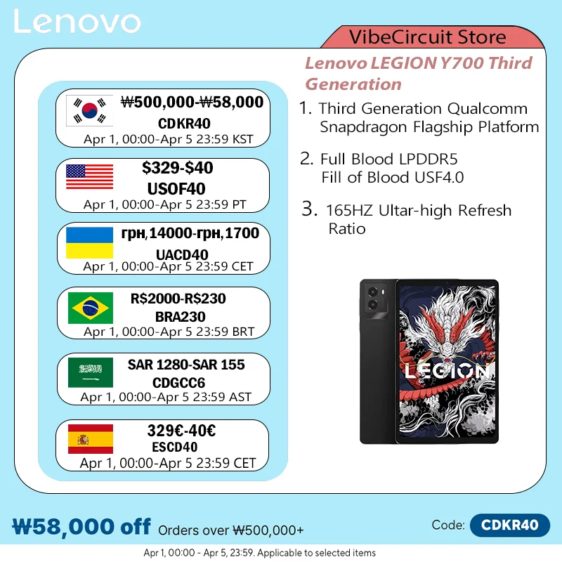 13 reviews for Lenovo LEGION Y700 Third Generation 2025 8.8-inch Esports Tablet Snapdragon 8 2.5K Gaming Tablet Black
