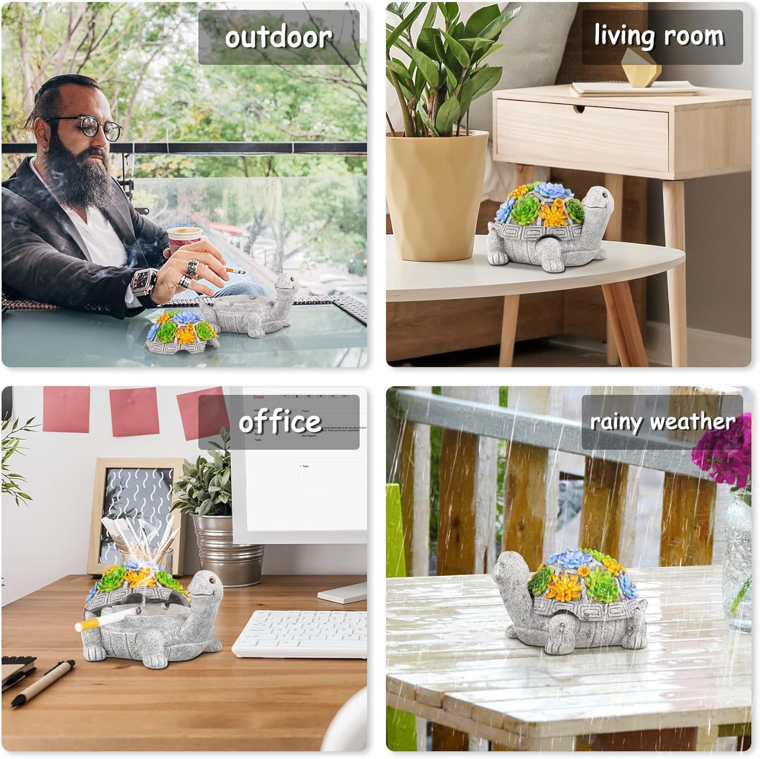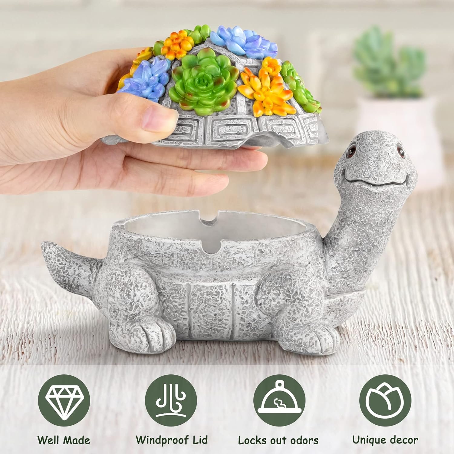 Unique design, the cute turtle ashtray has a succulent flower lid, which is vivid and eye-catching. This ashtray not only has a good collection value, but also brings exquisite artwork decoration to your desktop