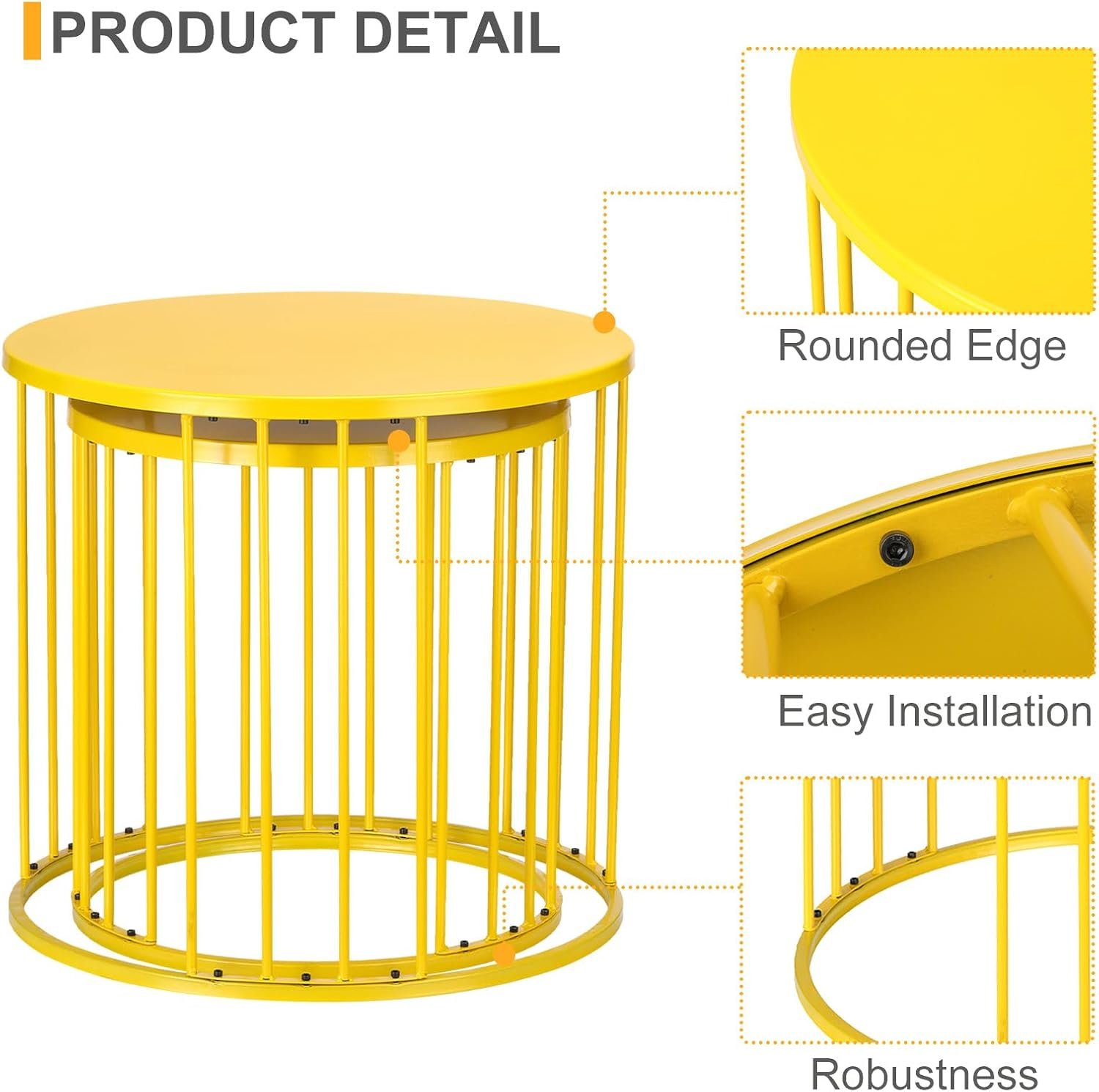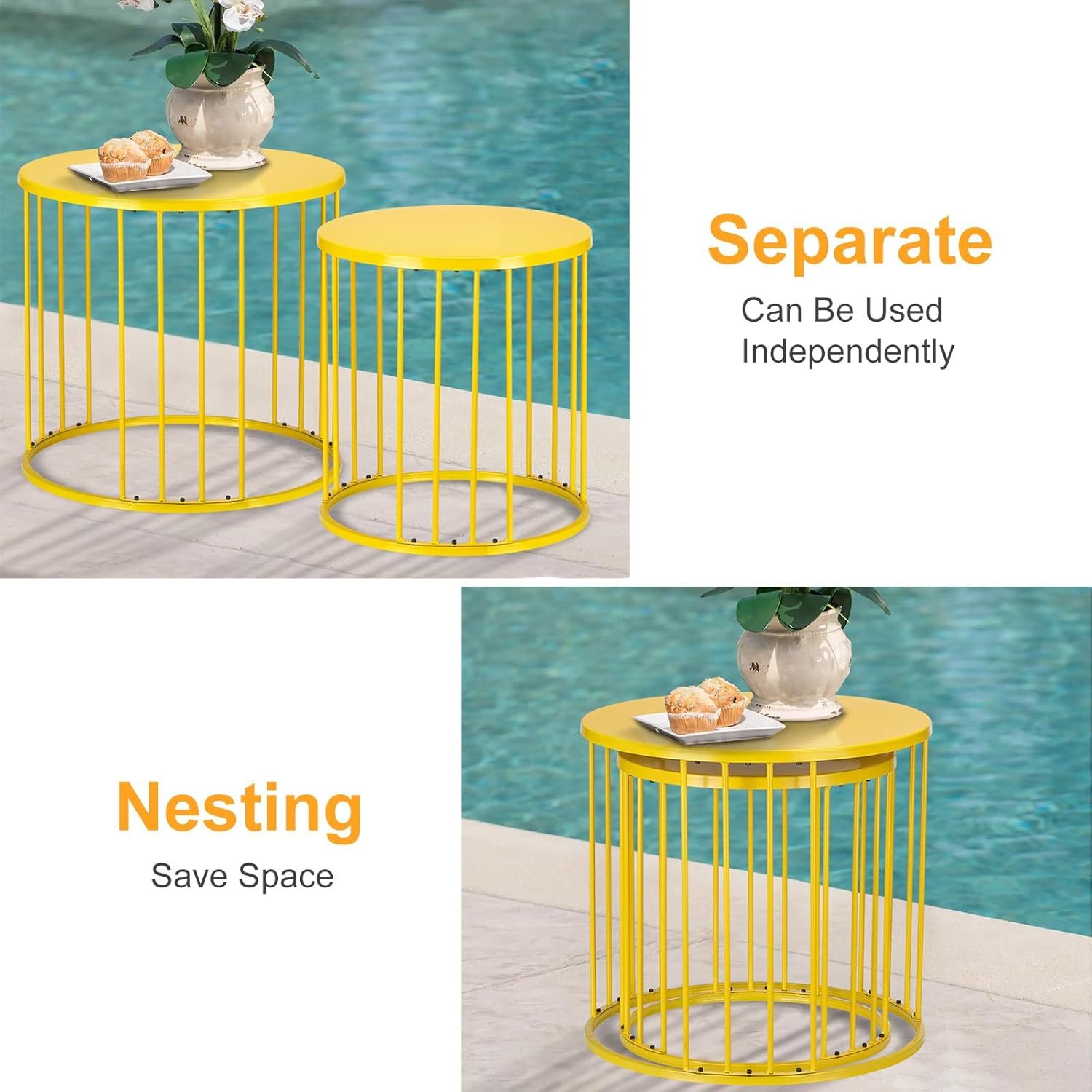 LEWIS&WAYNE Outdoor Side Table Set of 2, Metal Circle Accent End Tables for Balcony Backyard Garden Indoor Living Room, Durable Nesting Coffee Tables, 20”+16” Dia, Yellow