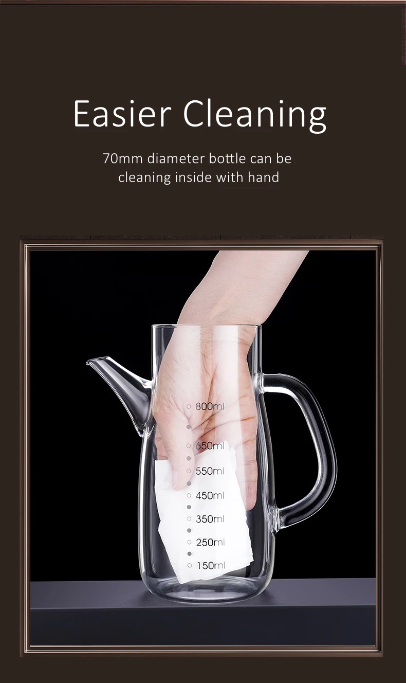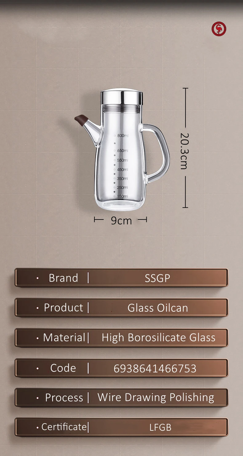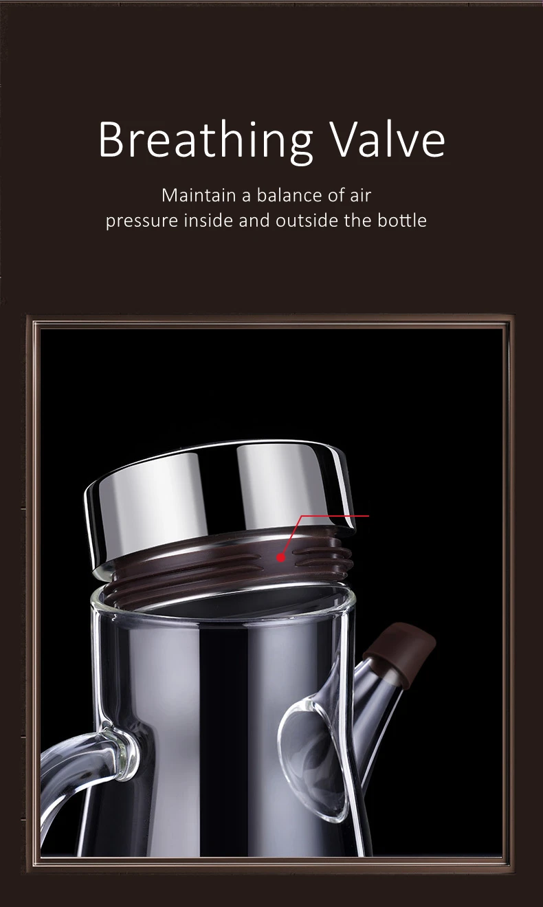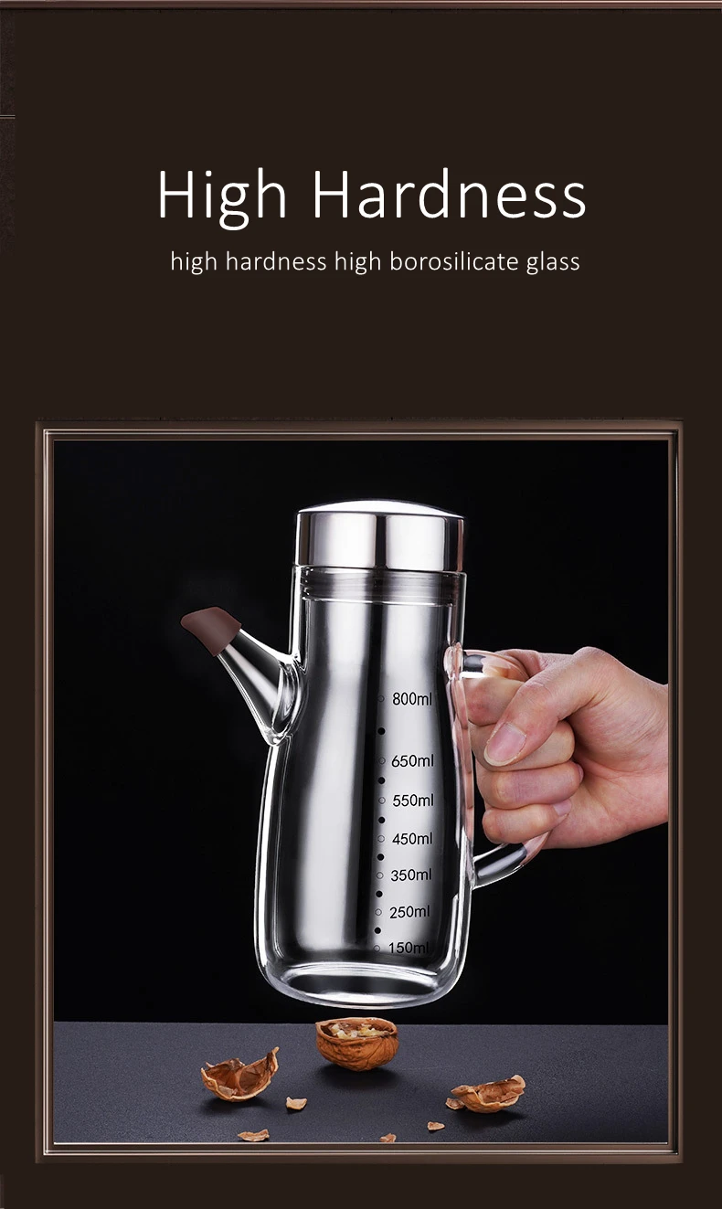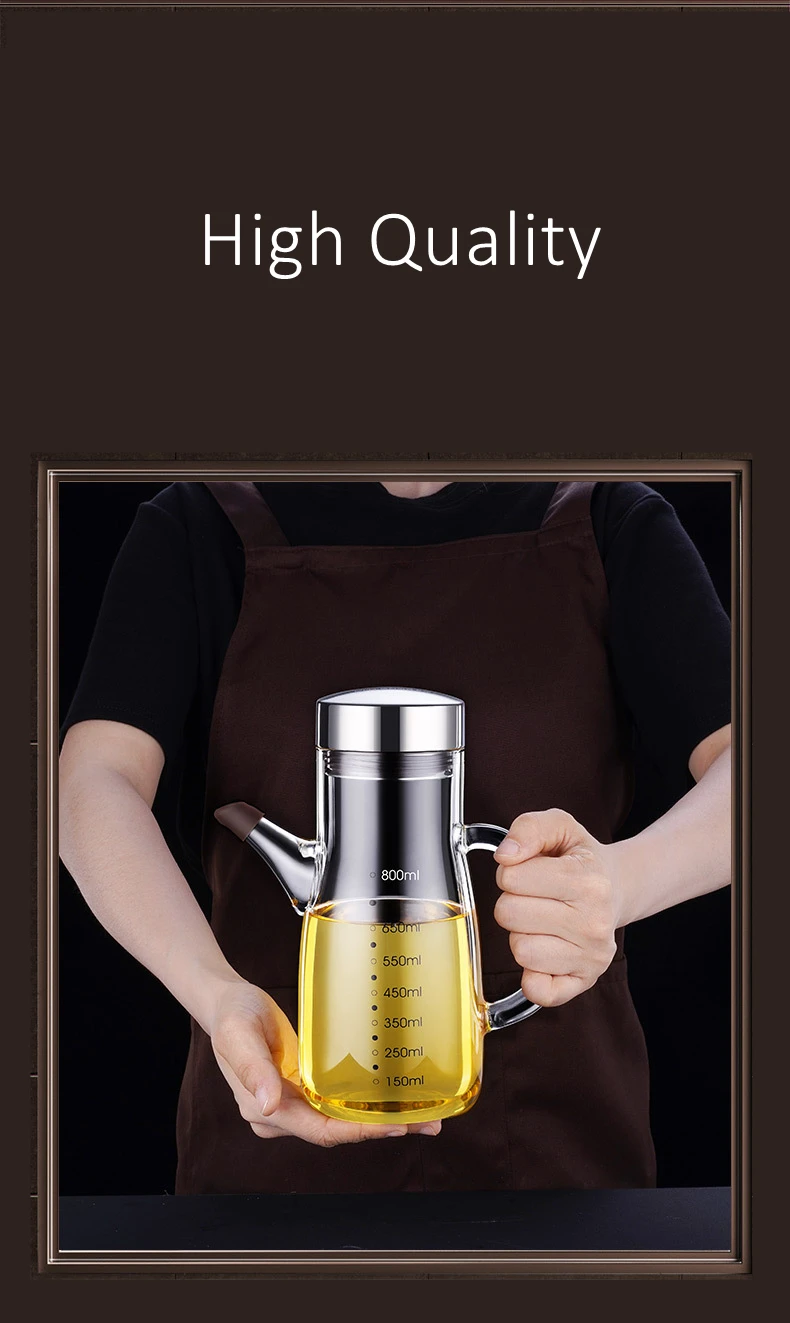 LFGB Certificate High Borosilicate Glass Oiler Well Sealed Oil Kettle Patented 800ml Oilcan for Kitchen Seasoning Container