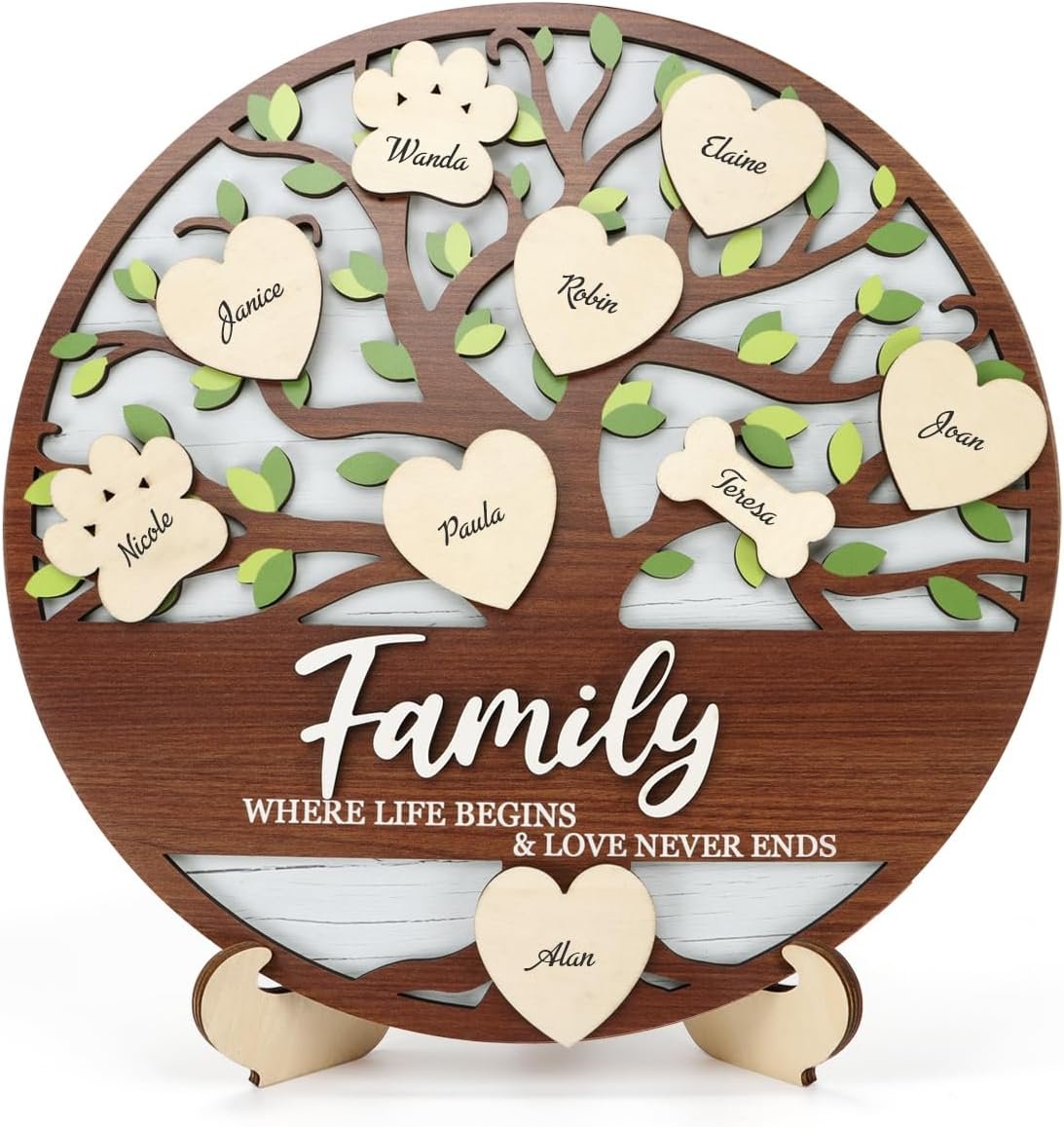 LHIUEM 3D Family Tree Decor Personalized Family Names Sign(12”x12”) DIY Names Inspirational Quote Gifts for Mom Grandma Families Birthday Thanksgivings Calendar Board with 20 Hook and Loop Stickers