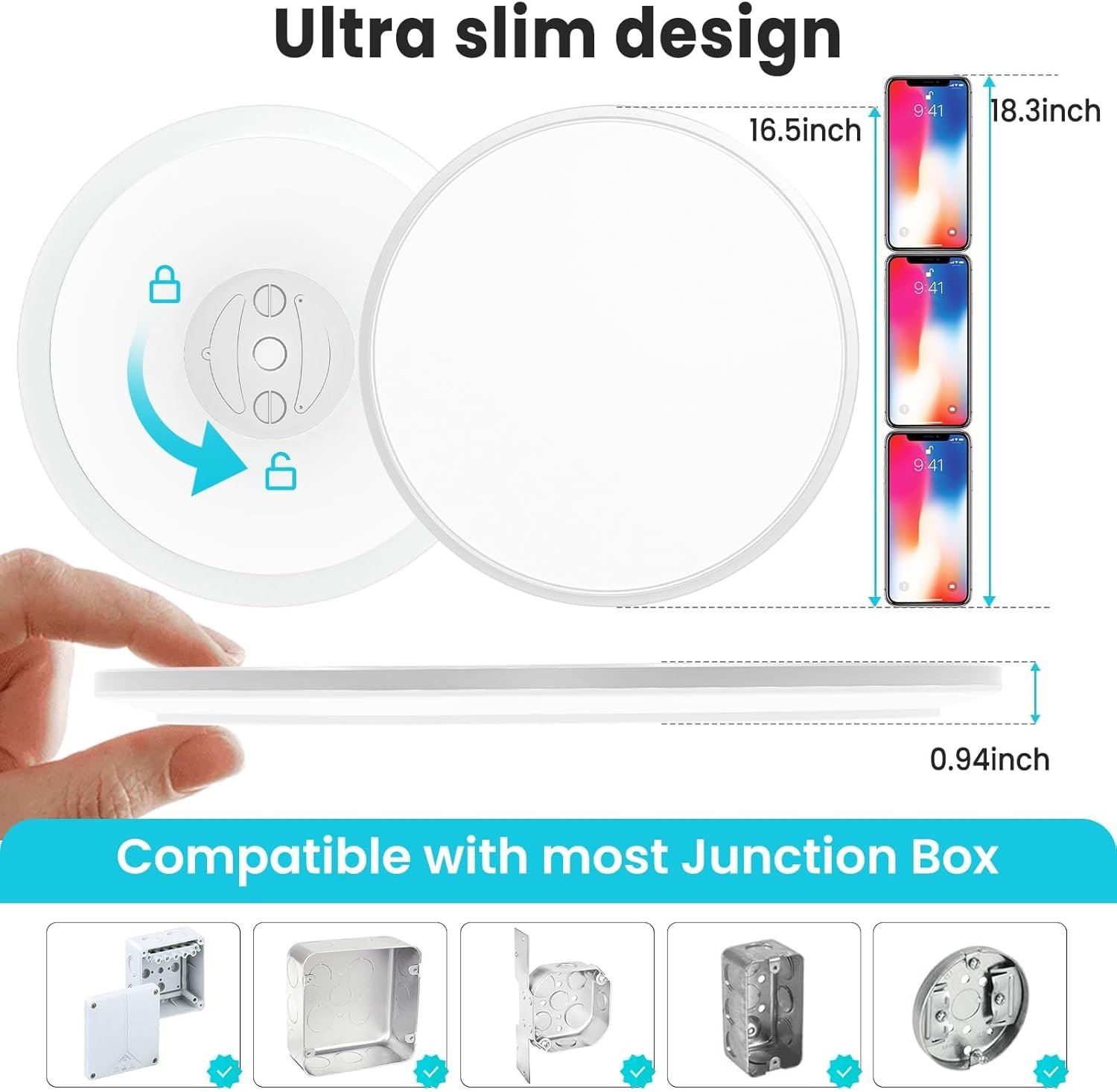 Large Size: With a thin 16.5inch diameter and a thickness of just 0.94 inches, this bright led ceiling lamp is perfect for a wide range of spaces including livingroom,diningroom,kitchens, bedrooms, and more. Enjoy crisp lighting in a sleek design with libtit.