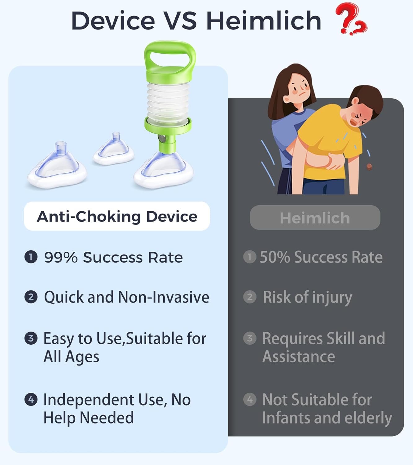 ✅【ER-Trusted Safety】Made with ISO-certified medical-grade silicone. Non-toxic, BPA-free, and rigorously tested for emergency use.Clinically validated suction technology (tested to remove obstructions 3x faster than others). Trusted by 50,000+ families and used in daycare centers, schools, and senior homes. Trusted by parents and professionals alike.