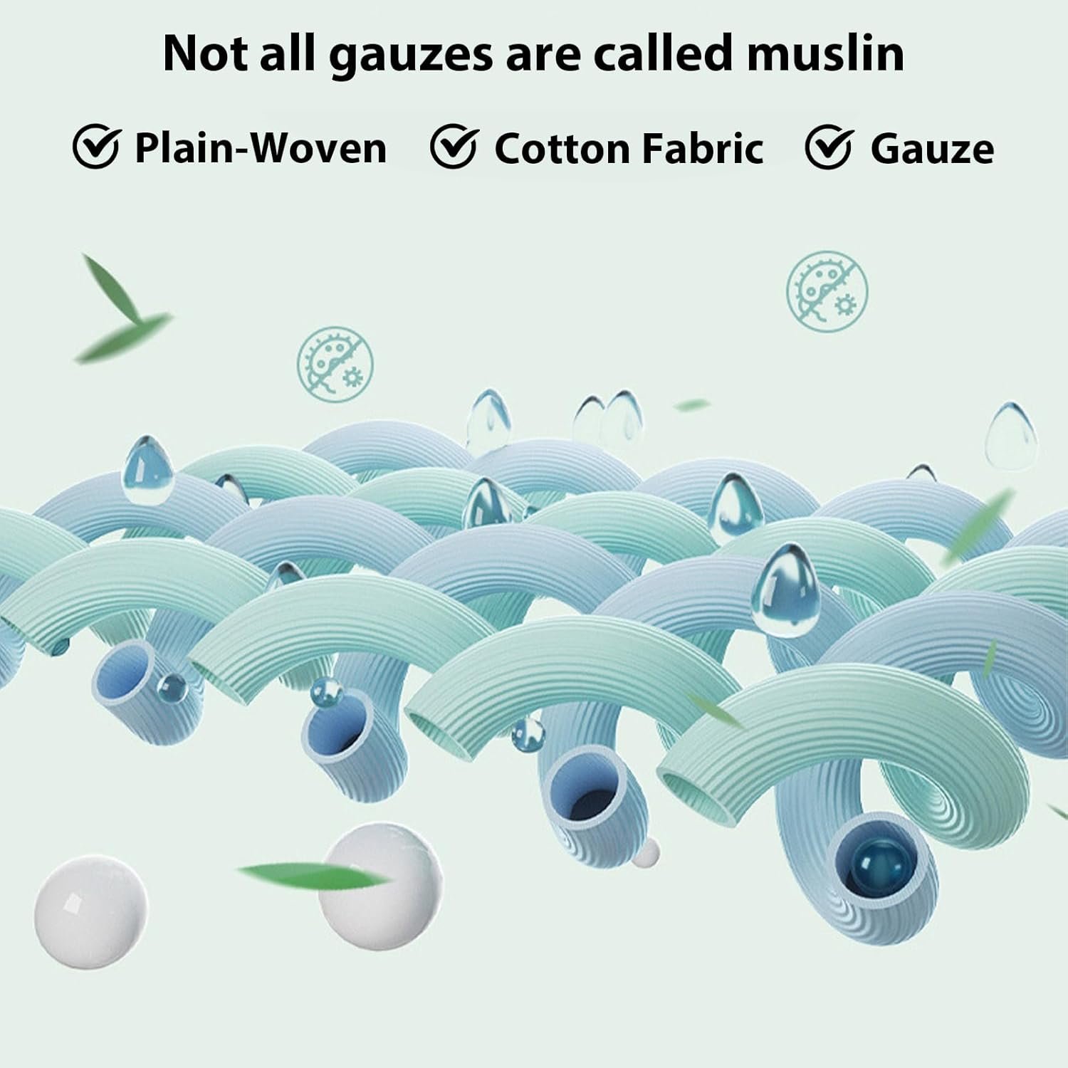 Not all gauzes are called muslin, which is plain weave cotton fabric.The unique weaving technique allows for free air circulation, making it highly breathable. And it has the characteristics of lightness, softness, moisture absorption, and durability,very suitable for infants.