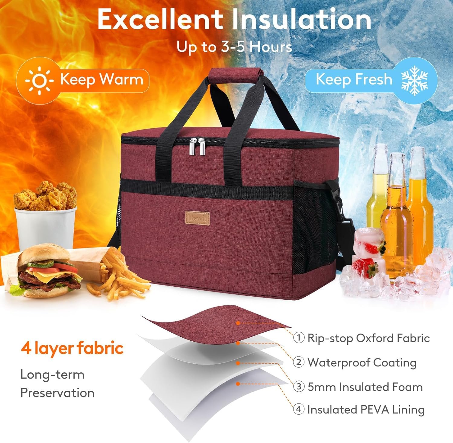 Premium Constructions: The exterior of the Cooler Bag is constructed out of 600D Oxford cloth for long time lasting using.