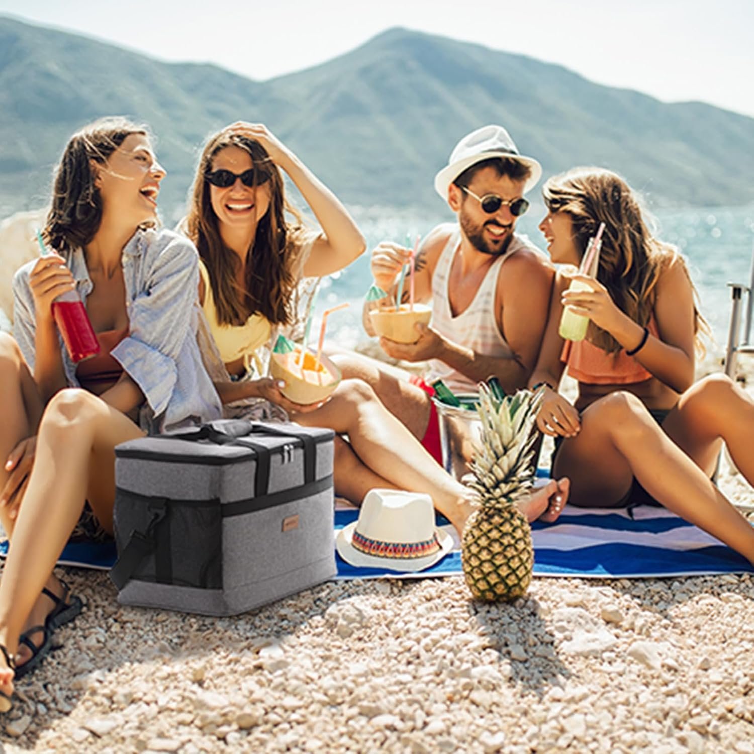 Put drinks, fruits and ice cubes to keep cool. The wide opening makes it easy to pick things up.