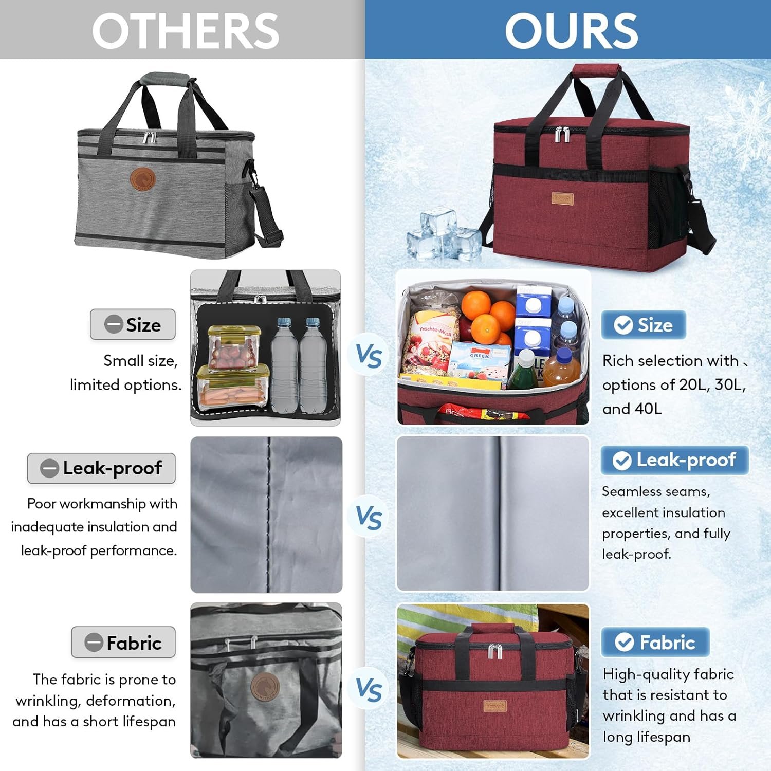 Multifunction: Large enough for whole-family picnic essentials. It is also ideal for camping, hiking, BBQs, shopping etc.