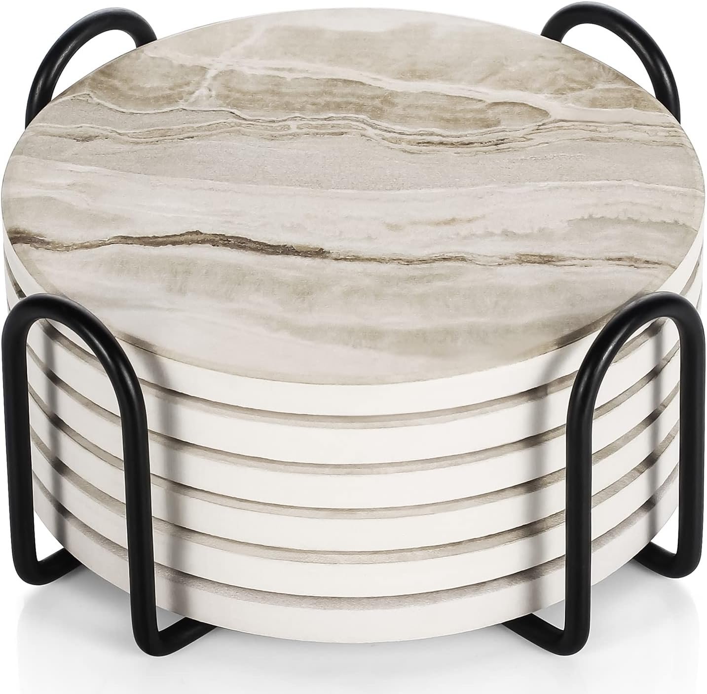 Stylish & Giftable: Ceramic coasters with a natural stone look, this modern coaster complement coffee tables and marble surfaces beautifully. Many customers consider sandstone coasters as an ideal white elephant gifts for adult useful, often recommended by friends