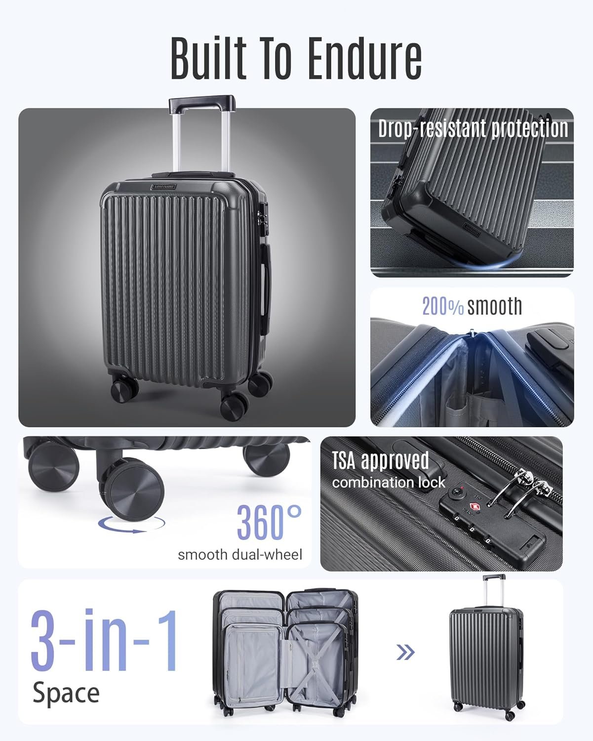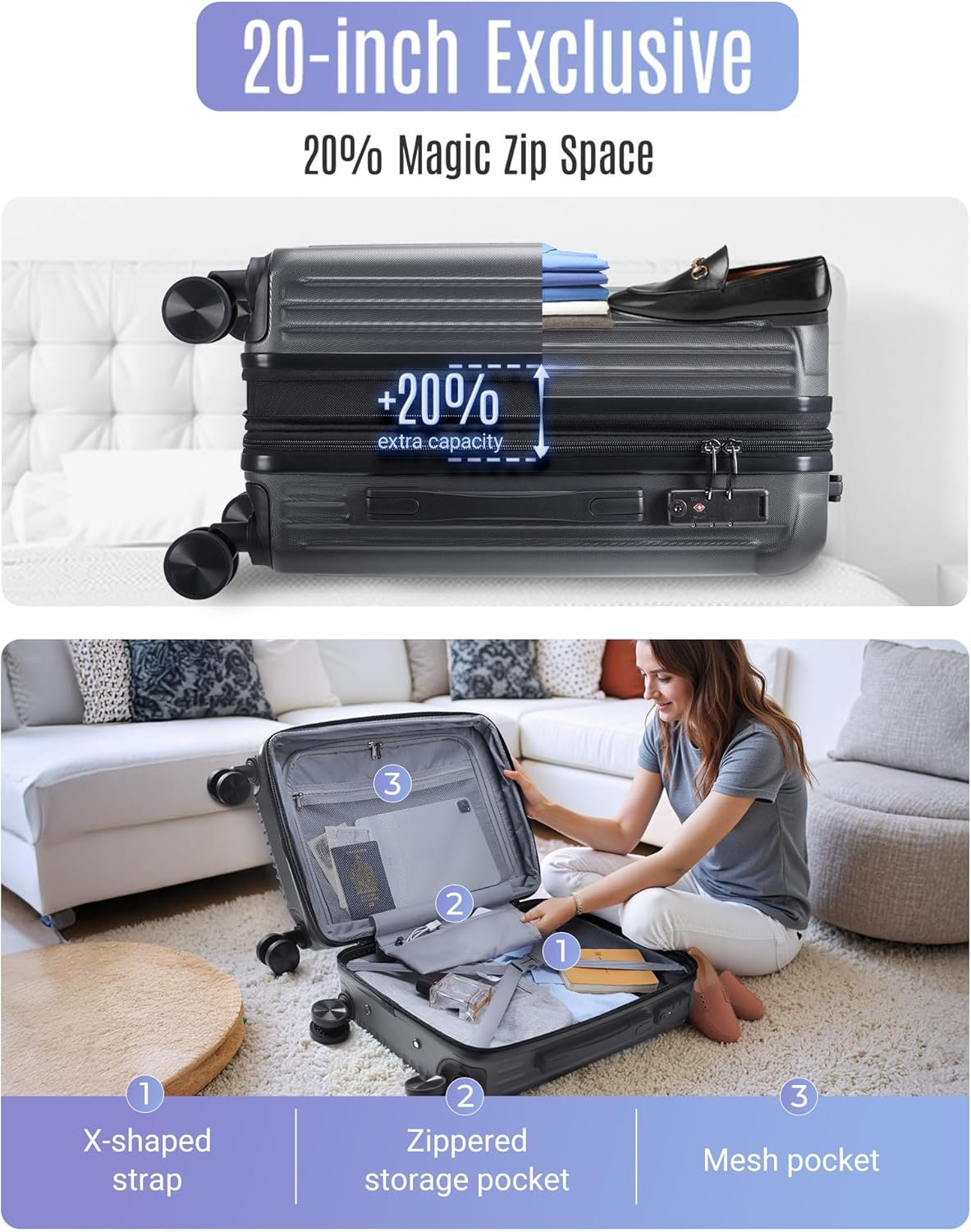 ​​Expand Your Space, Elevate Your Journey​​:(20″ suitcase feature) Secret compartment unlocked! Our smart-expandable design adds 2″ of height + 20% more volume. Effortlessly transition from weekend getaway to month-long trip without the bulk. Pack smart, travel in style.