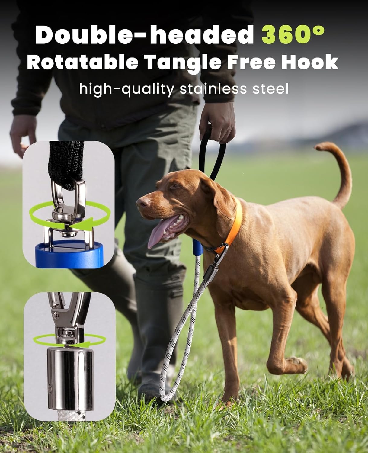Comfortable & Secure Design: Enjoy the ultimate comfort with the soft padded handles provided by the dog leash, designed not only for comfort but also to prevent burns. The user-friendly metal clip ensures quick and hassle-free securing. Additionally, the double-headed 360°Rotatable Tangle-Free Hook effectively prevents twisting and tangling, while the heavy-duty metal clasp ensures durability, making it a dependable choice for daily use.