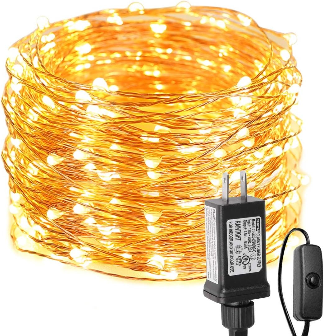 Lighting EVER Plug in Fairy Lights with Switch 66 ft 200 LED String Lights, Warm White Copper Wire Lights Waterproof Indoor Outdoor Decorative Fairy Lights for Bedroom, Patio, Garden, Balcony, Dorm
