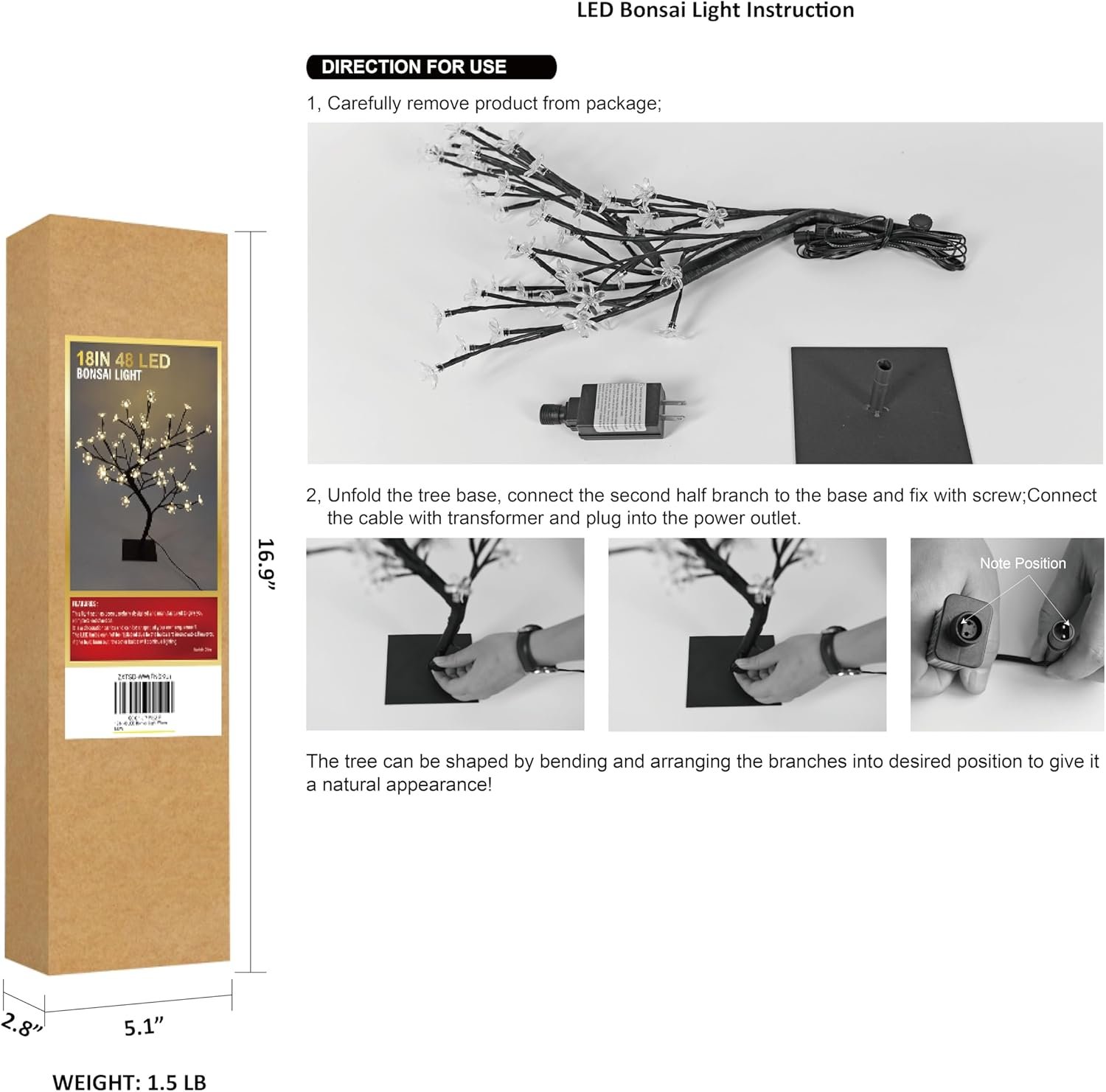 Adjustable: Satisfy DIY need with the adjustable branches. You can bend the branches and the tree into any shape or more natural tree shape as you like. Build up exclusive tree light for yourself.
