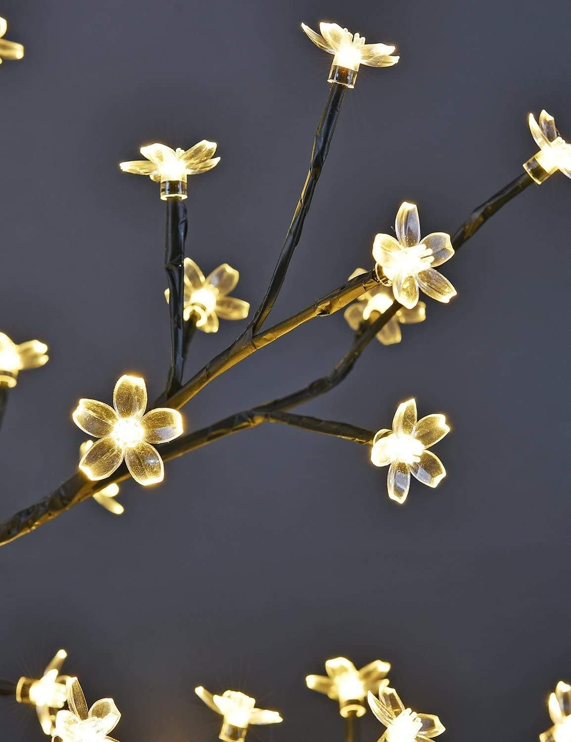 Upgrade Power Supply: 24V adapter; built-in LED lights are topped with rubber-constructed cherry blossoms giving off a soft, warm aura eco-friendly, energy-Saving and Safe, so you can use it wherever you want