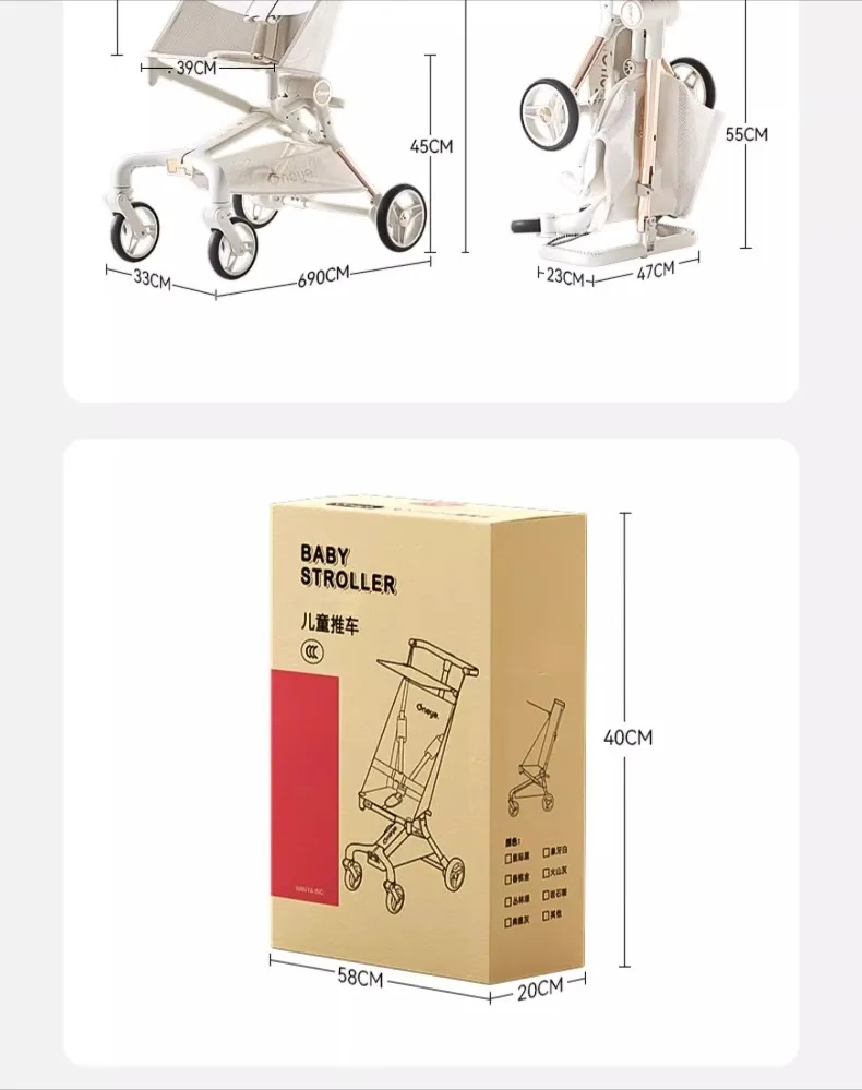Lightweight Baby Stroller Portable Outdoor Travel Baby Stroller Foldable Shock-absorbing Four-wheel Baby Stroller with Sunshade