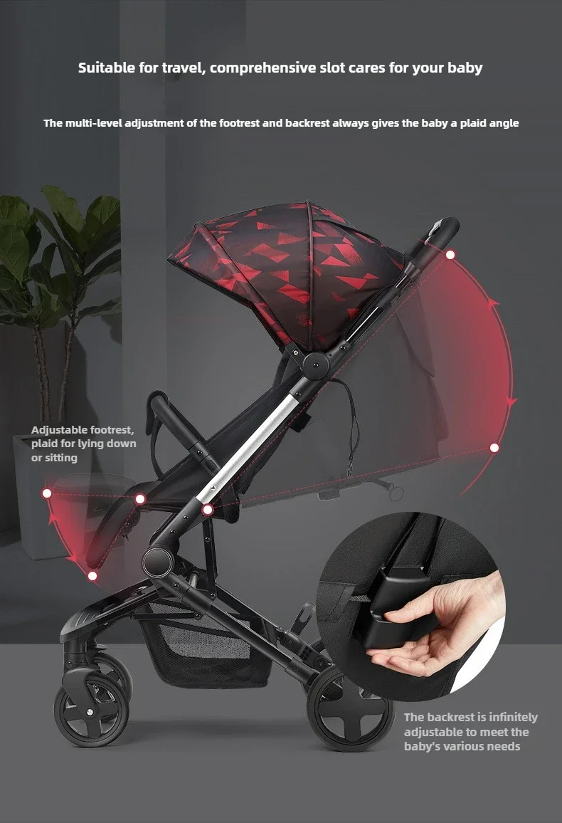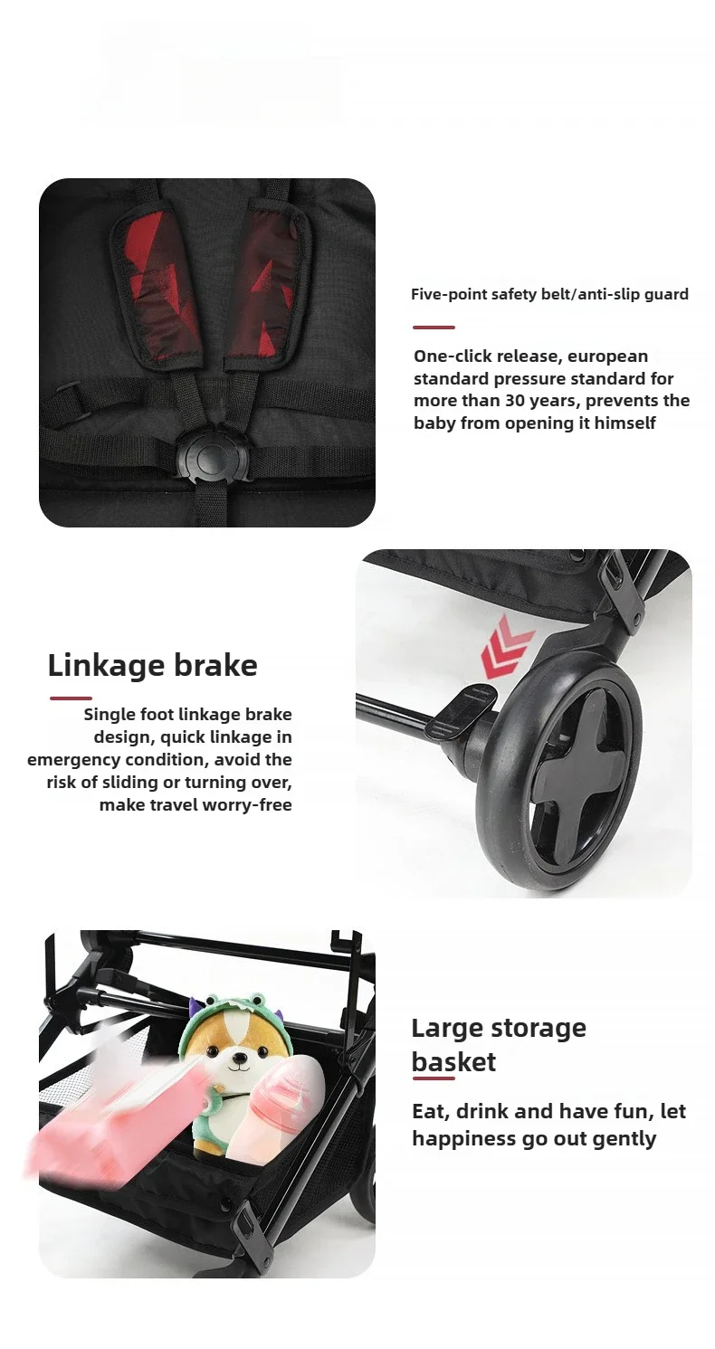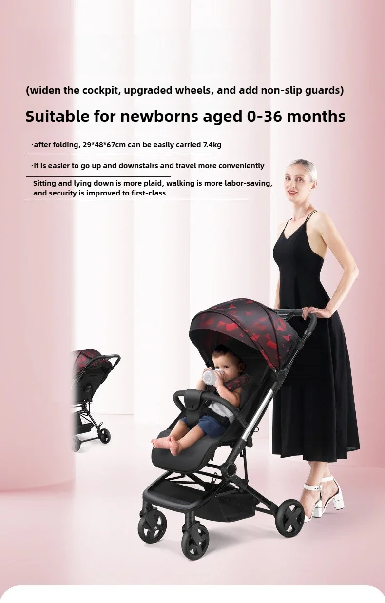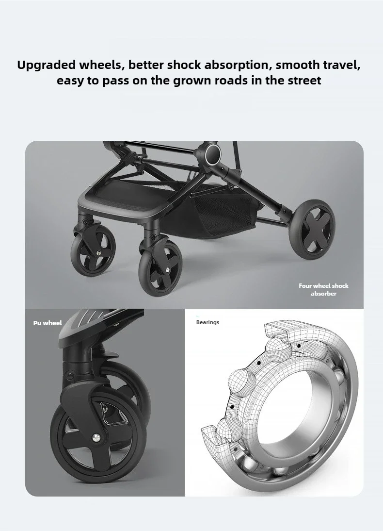 Lightweight Extra Wide Stroller High Landscape Easy Folding Baby Stroller That Can Sit and Lie Down with Five-point Safety Belt