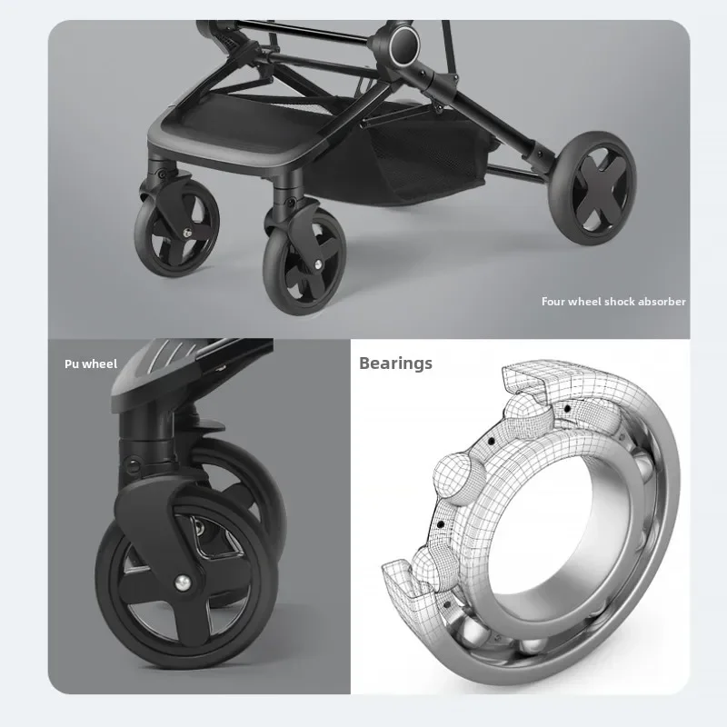 Lightweight Extra Wide Stroller High Landscape Easy Folding Baby Stroller That Can Sit and Lie Down with Five-point Safety Belt