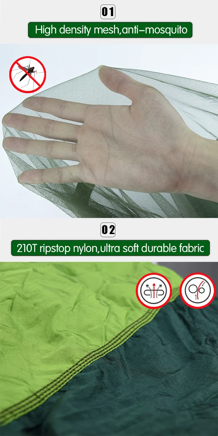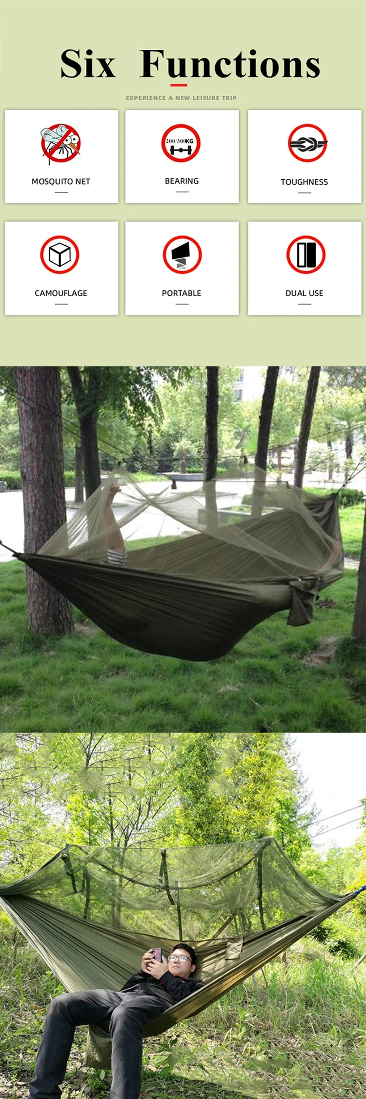 Lightweight Portable Outdoor Camping Hammock with Mosquito Net High Strength Parachute Fabric Hanging Bed Hunting Sleeping Swing