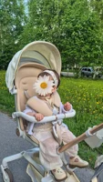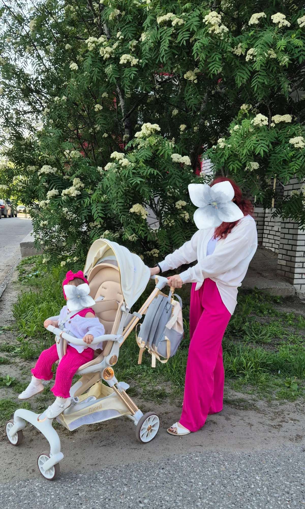 The stroller is cool, very beautiful. Arrived before the stated date, just assembled) The wheels, of course, won’t compare to inflatable ones in terms of off-road and smooth movement, but for the price, it’s really not bad. It doesn’t go on sand at all, keep this in mind. The hood sometimes falls off because it doesn’t fit into the grooves completely for some reason, maybe I’m doing something wrong, but it seems to push in all the way. Turning away from yourself and towards yourself is not a problem, fast and convenient. The table hasn’t been set up yet, the lighting hasn’t been turned on. Everything is included in the set: a raincoat, a mosquito net, a blanket for the legs, and a pillow. everything beige is cute with teddy bears) I recommend buying.