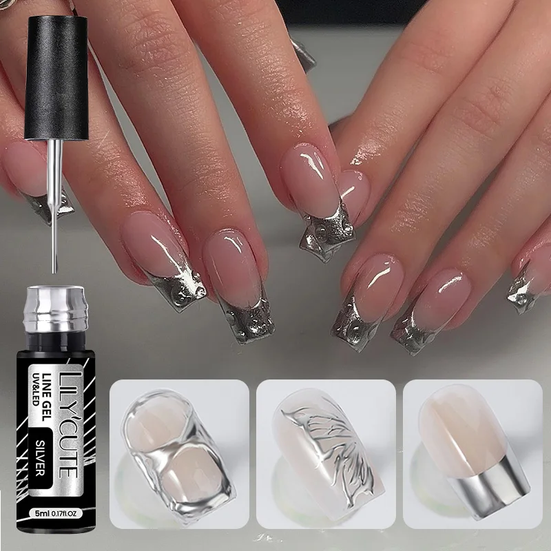 LILYCUTE 5ml Gold Sliver Metallic Liner Gel Nail Polish French Style Super Bright Mirror Pull Line Graffiti Painting Stripe Gel
