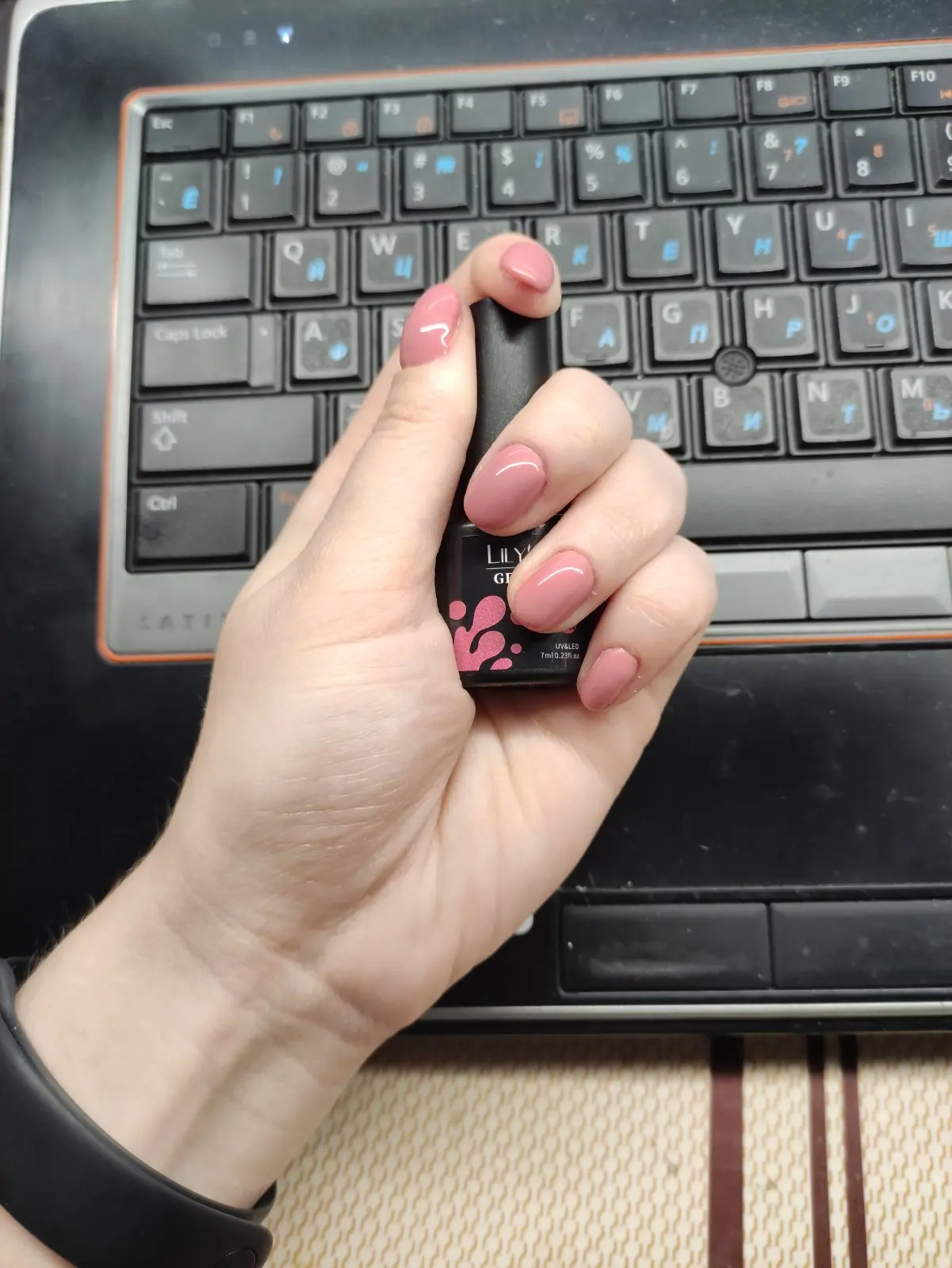 In the photo the color is darker. In fact – the color of barbie pink, is brighter and lighter. The polish is of good quality, applies well and lasts on the nails for a long time (i order the second time from this seller, i already have a light pink polish)