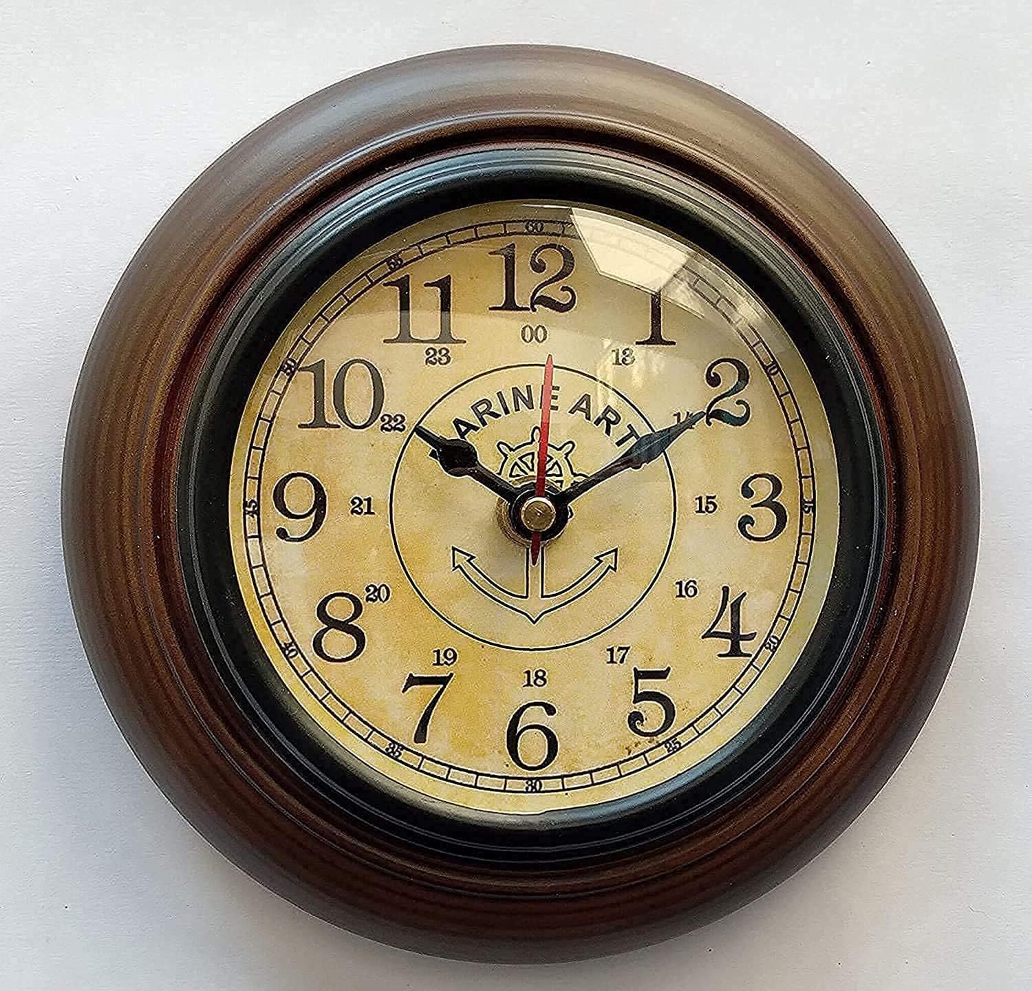 LINE Wood™ – Handmade Wooden Wall Clock Vintage Look Marin Art Style Deep Glass Home & Office, Studio Decoration Gift (6 Inch Antique)