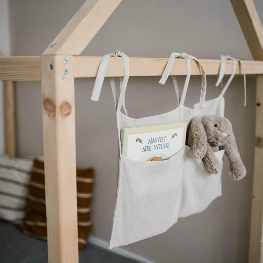 Hanging linen crib storage bag is suitable for diapers, pacifiers, teethers ,baby wipes, diapers, or small toys and more,You can also keep there toys, books or anything you want