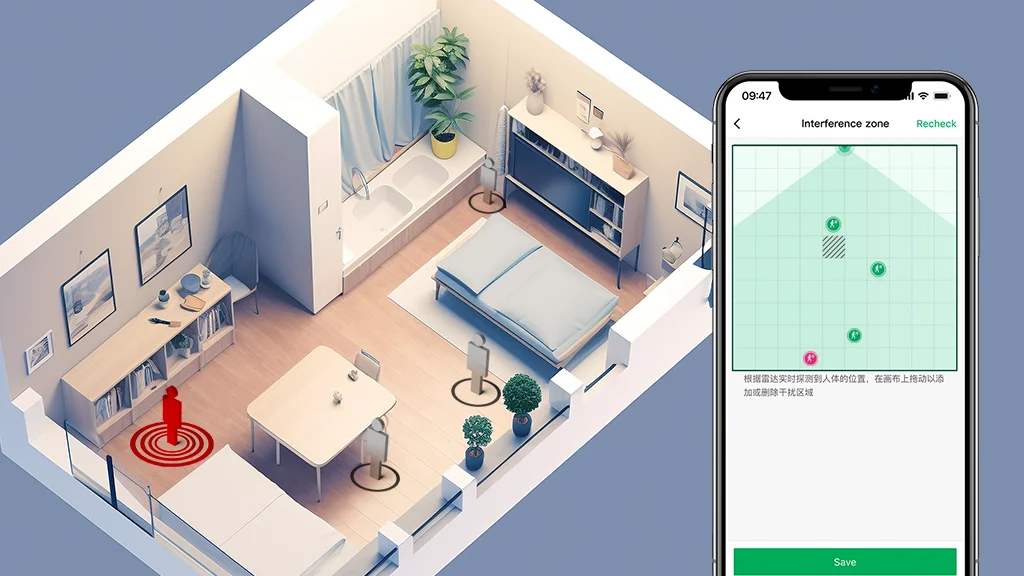 【Multi-Zone Positioning & Smart Automations】No need for multiple sensors! With up to 4 customizable detection zones (e.g., sofa, bed, desk), simply tap and draw on a 100-grid map within the app. Set personalized automation rules for each zone with precision and ease.