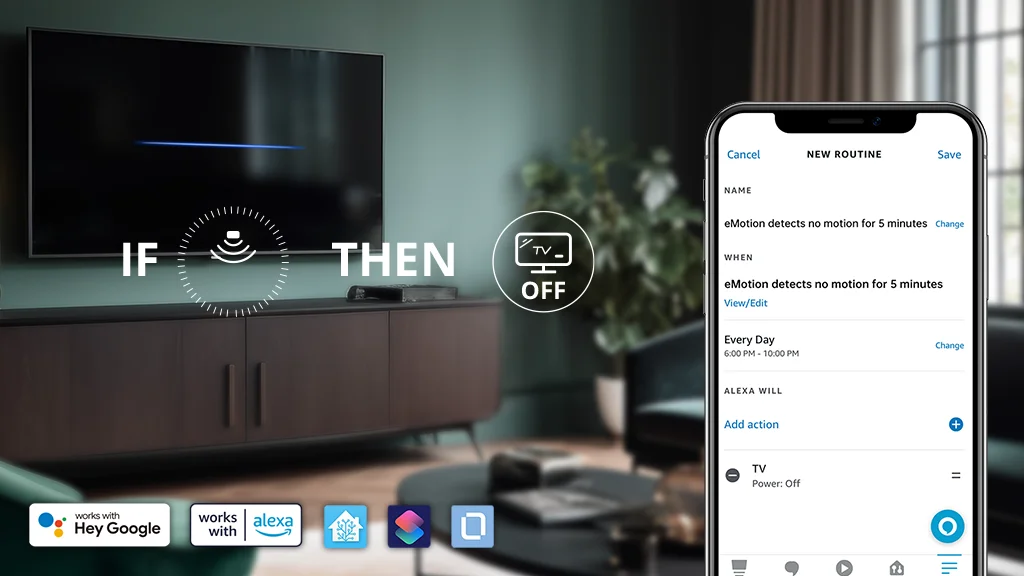 【Superior Anti-Interference Accuracy】eMotion Max intelligently filters out non-human movement in 3D space. Define interference zones in the app to exclude items like plants, curtains, or pets, and set a filtering height to ignore fan movement or crawling pets—ensuring accurate human presence detection every time. Note: eMotion Max requires a certified 5V/2A power adapter. Please refer to the “Installation Guide” in the app for setup instructions.