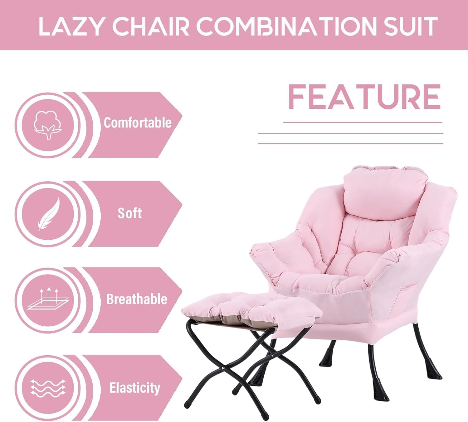 LAZY CHAIR WITH OTTOMAN: The leisure chair comes with a footstool that can be quickly folded when not in use for easy storage. You can rest on a footstool, place the stool next to the sofa and end table in the living room as a footboard to relax your feet, or even place it in the hallway or doorway and sit on a small stool while changing your shoes.